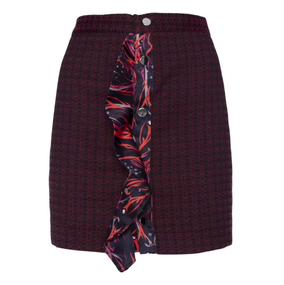 Jaquard miniskirt with rouge on the front in red printed satin.