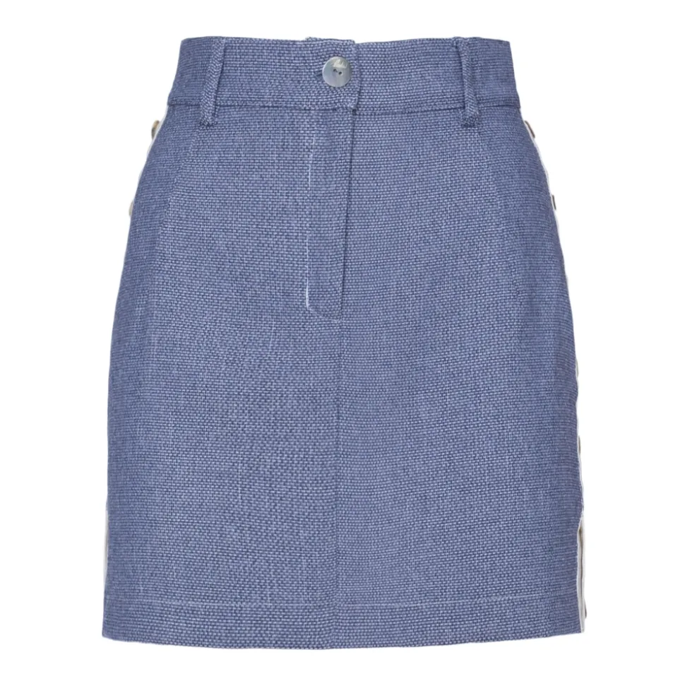 Tannura. Denim-colored mini skirt, with pockets and non-opening buttons detail logoed on the right and left sides.