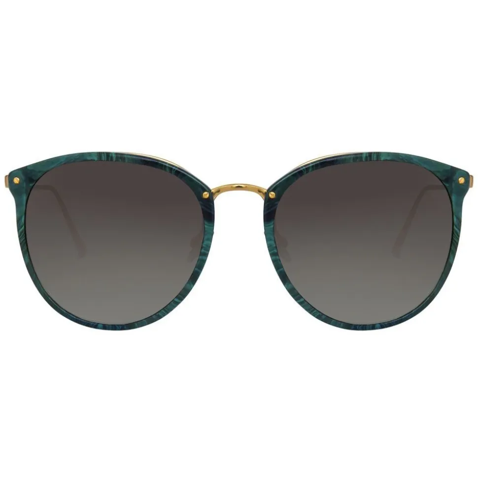 Taking inspiration from vintage styling, these oversized oval sunglasses from Linda Farrow are handmade from an elegant combination of 18-22 carat yellow gold-plated titanium and hand polished jade marble Italian acetate.