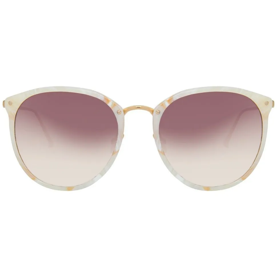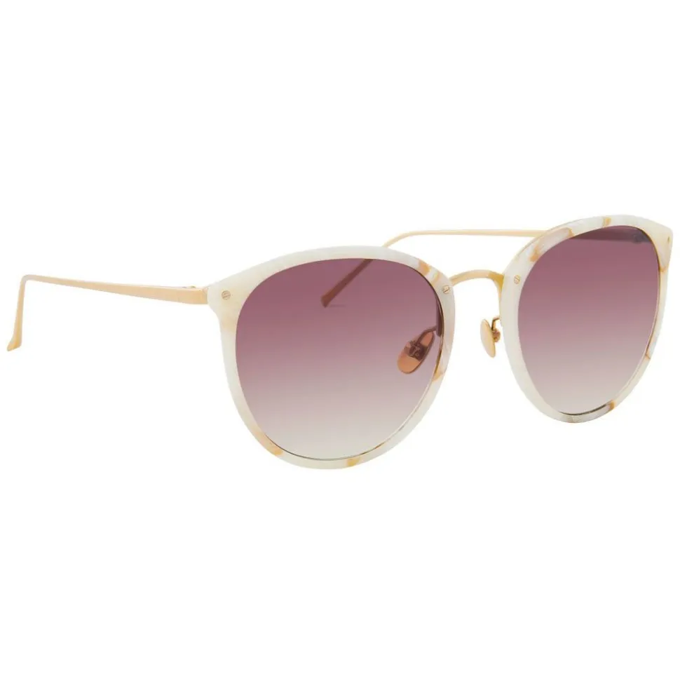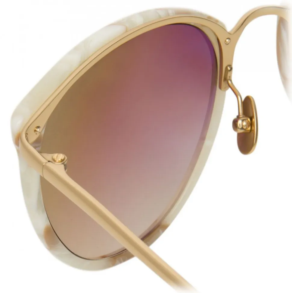 Taking inspiration from vintage styling, these oversized oval sunglasses from Linda Farrow are handmade from an elegant combination of 18-22 carat light gold-plated titanium and hand polished quartz Italian acetate.