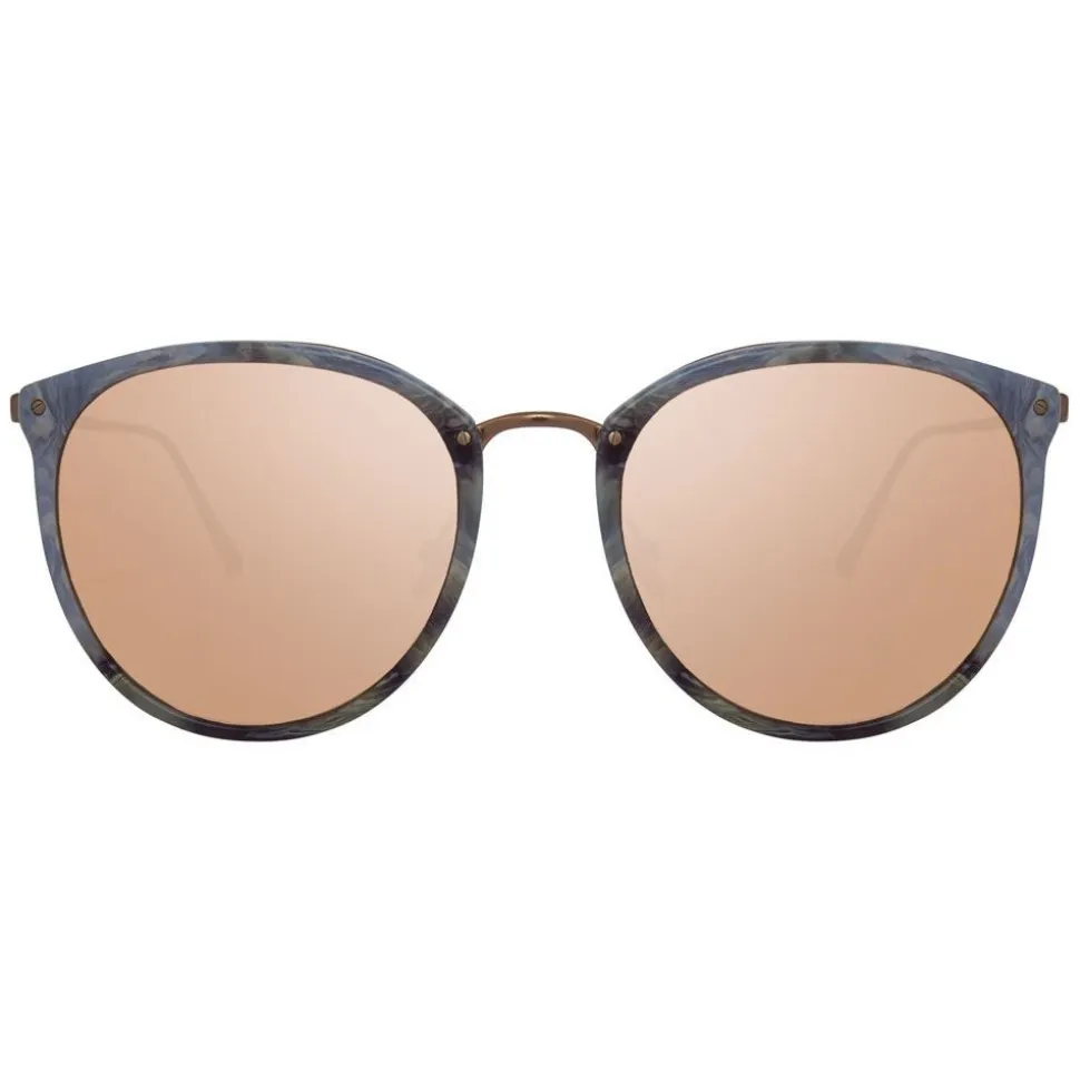 Precious rose gold lenses accent this pair, finished with characteristic curved Japanese bulb tips and adjustable nose pads for added comfort. Signature raised pins and the Linda Farrow logo on the inside of the temple completes this timeless design.