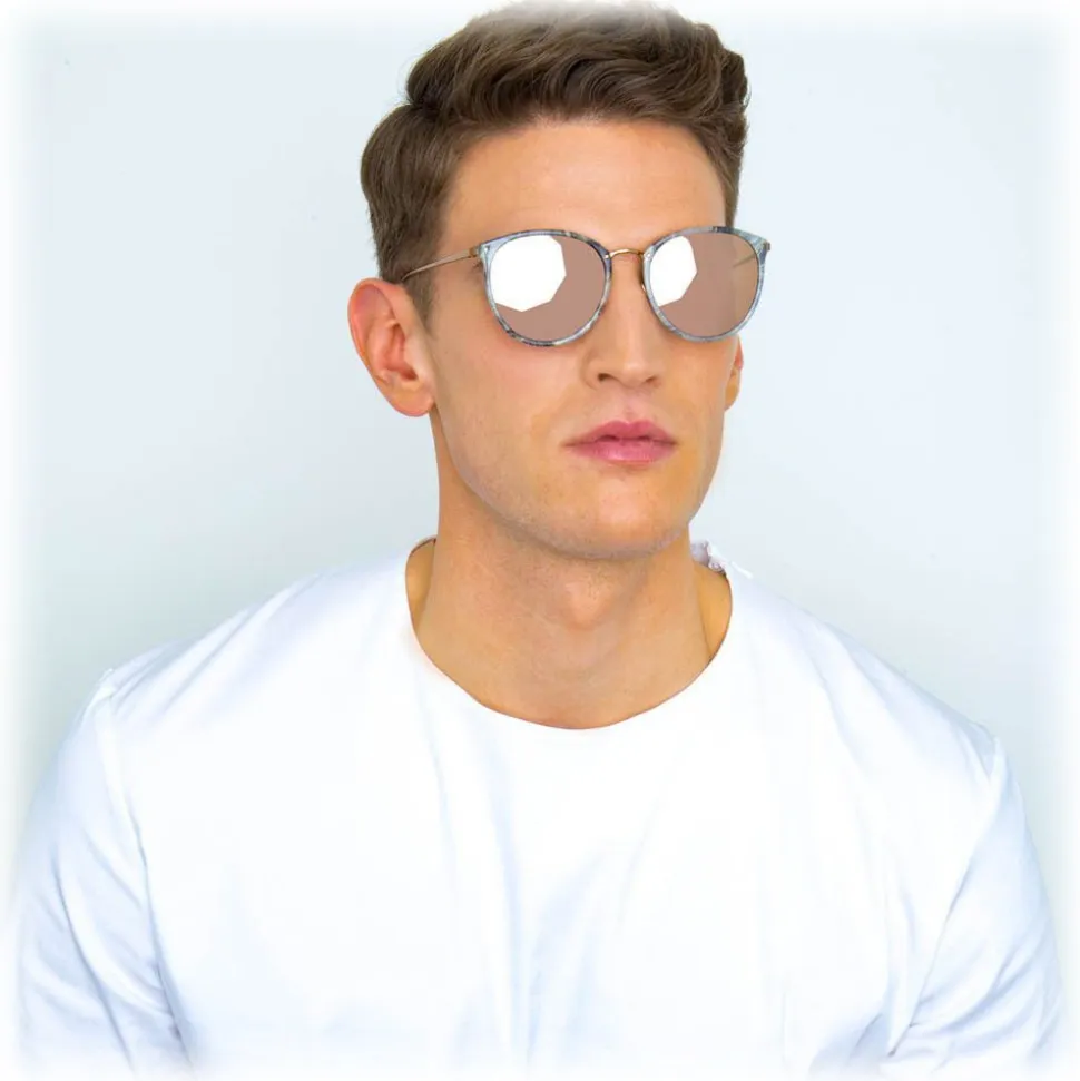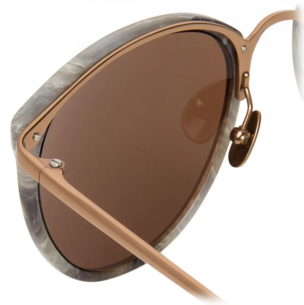 Taking inspiration from vintage styling, these unisex oversized sunglasses from Linda Farrow are handmade from an elegant combination of grey marble Italian acetate and 18-22 carat rose gold-plated titanium, which runs along the back of the acetate frame and into the temples.