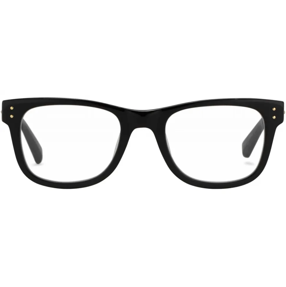An everyday classic these D-frame optical glasses from the LINDA FARROW collection are crafted from hand polished recycled black acetate with sculpted nose pads and temple tips. The style is finished with 22 carat gold plated hardware and engineered screws for seamless hinge movement.