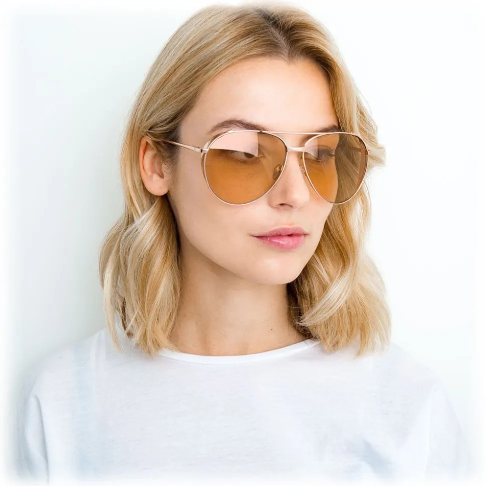Handcrafted purely from 18 – 22 carat rose gold-plated lightweight titanium, these aviator sunglasses from Linda Farrow imbue elegance and luxury. With solid peach lenses, these timeless sunglasses are instantly recognisable by their statement rose gold blinkers.