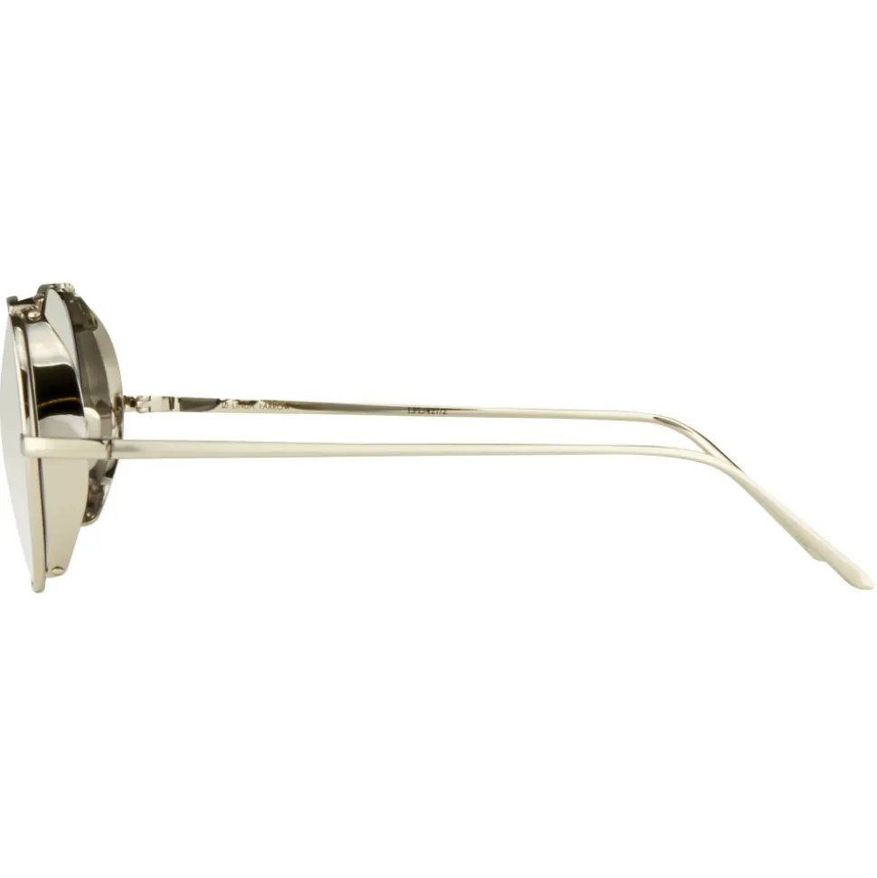 Upgrading an oval silhouette with eye-catching details, these luxurious sunglasses from Linda Farrow are handcrafted purely from 18-22 carat white gold-plated titanium. Precious platinum lenses are accented with statement white gold blinkers, contrasted with slim temples which are tapered at the ends with Japanese bulb tips.