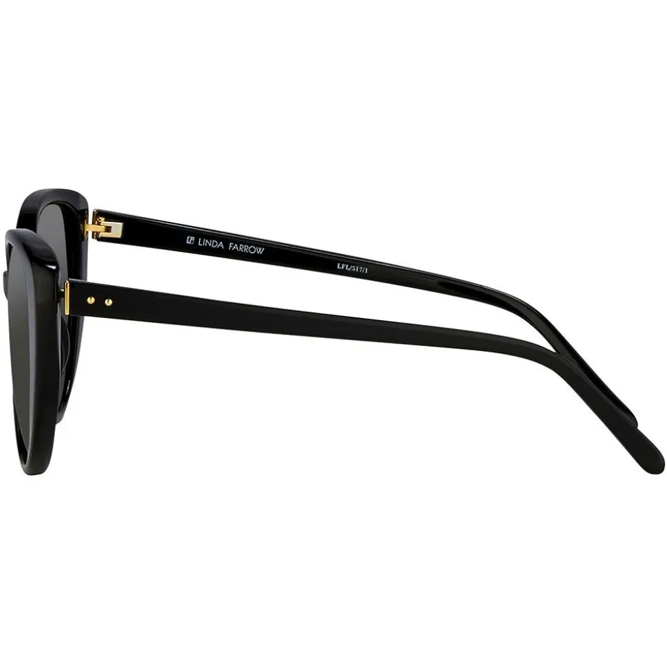 The epitome of timeless chic, these Linda Farrow sunglasses are handcrafted from high-shine black Japanese acetate in a flattering cat eye silhouette. With co-ordinating classic grey nylon lenses, signature details include raised pins and 18-22 carat gold-plated titanium capped hinges.