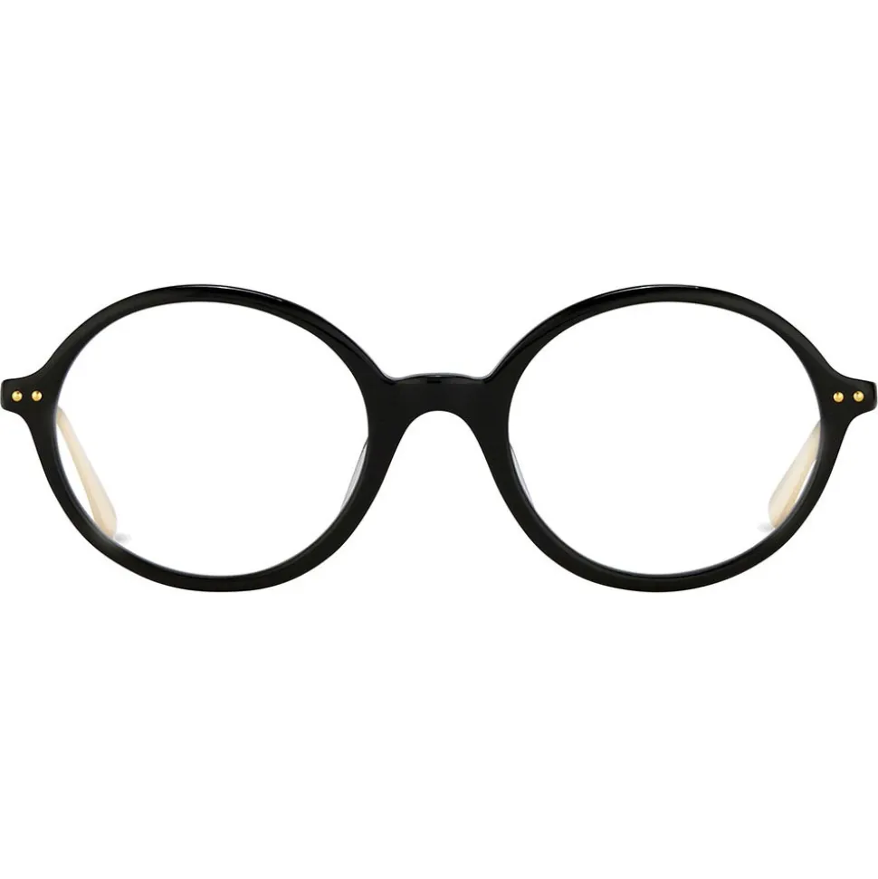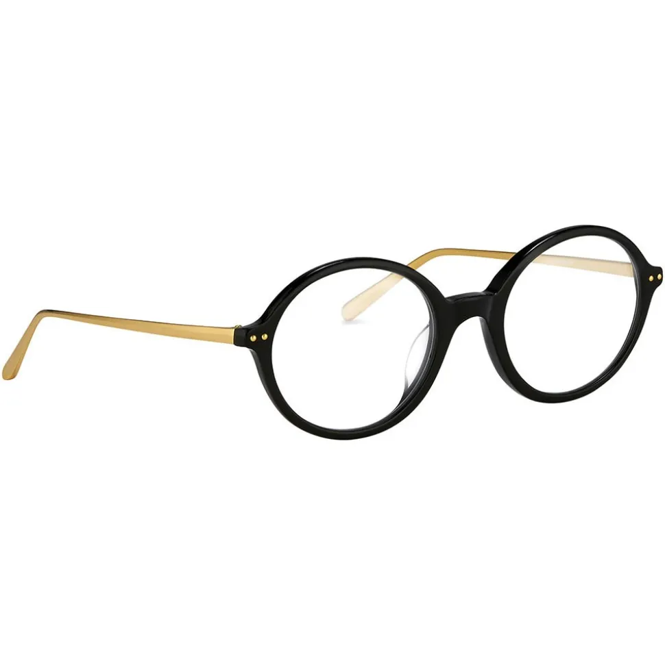 Fusing a classic silhouette with luxurious details, these unisex optical glasses from Linda Farrow are handcrafted from high-shine Japanese acetate in black. Contrasting raised pin details and slim temples are made from 18-22 carat gold-plated titanium for a lightweight, elegant finish. Japanese bulb tips and acetate nose pads provide superior comfort for all-day wear. The Linda Farrow logo can be found in white on the inverted side of the temple.