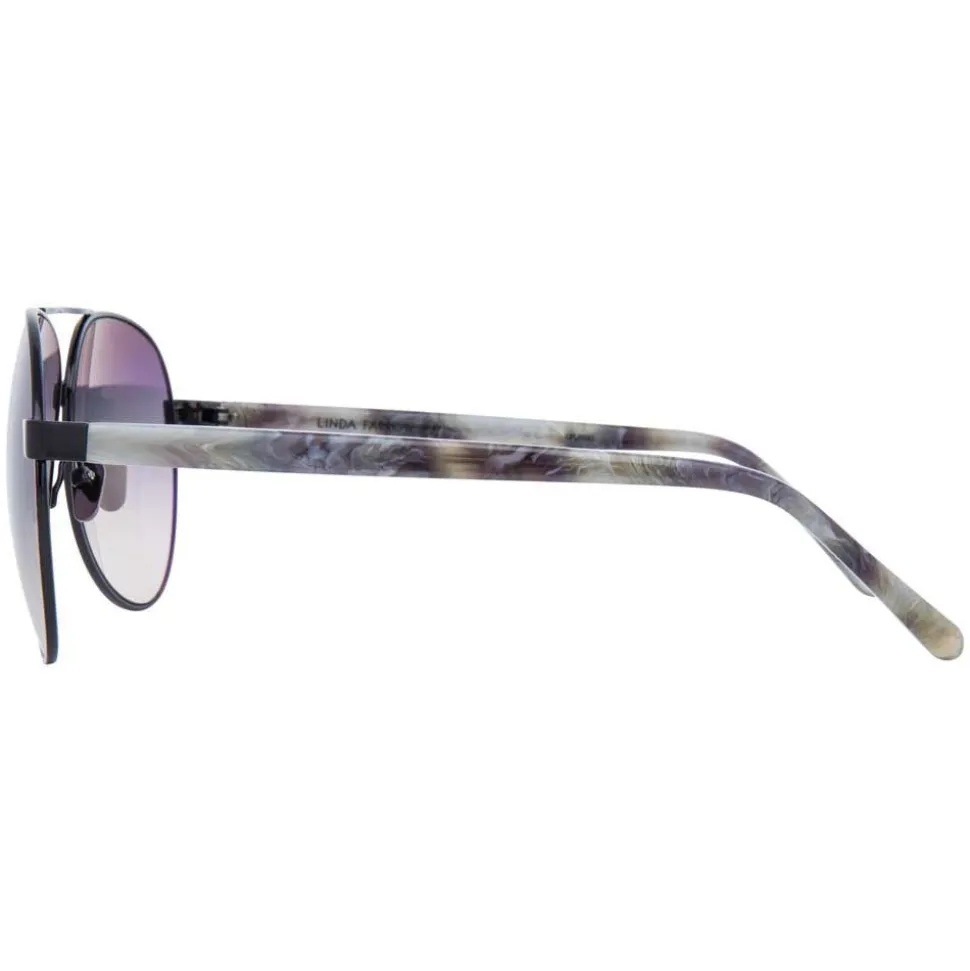 Luxurious, retro-inspired Linda Farrow aviator sunglasses crafted with hypoallergenic, lightweight black to 18-22 carat rose gold plated Japanese titanium frames and grey gradient lenses. Referencing raw materials, marbled Italian acetate temples are complete with signature pointed Japanese bulb tips and adjustable nose pads to provide additional comfort, finished with the Linda Farrow logo printed on the inside of the temple.