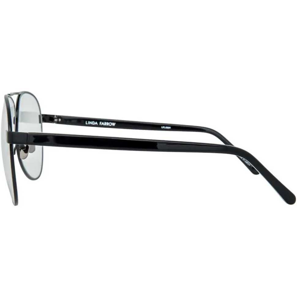 Luxurious, retro-inspired Linda Farrow aviator optical glasses crafted with hypoallergenic, lightweight black to 18-22 carat white gold plated Japanese titanium frames. Black Italian acetate temples are complete with signature pointed Japanese bulb tips and adjustable nose pads to provide additional comfort, finished with the Linda Farrow logo printed on the inside of the temple.Â