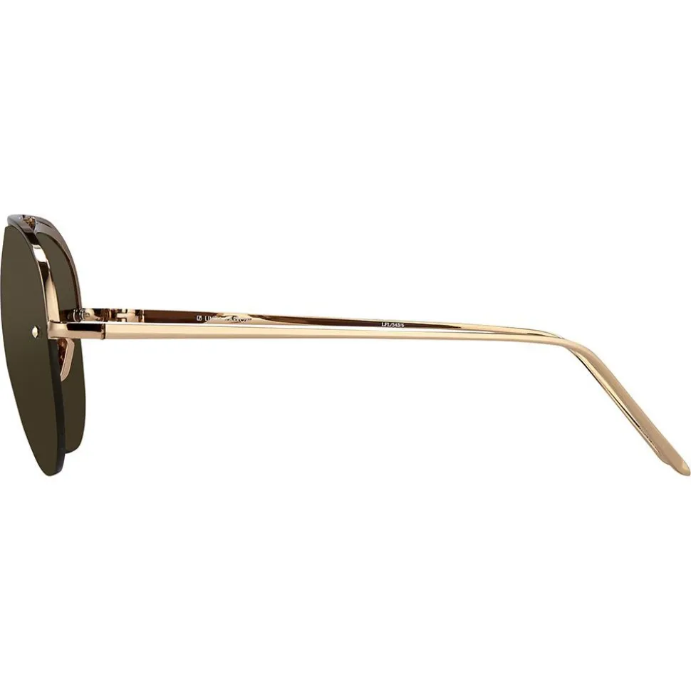 Luxurious aviator sunglasses from Linda Farrow featuring solid brown nylon lenses, contoured by a thin 18-22 carat rose gold-plated Japanese titanium top bar, inner rim and nose bridge that creates a floating effect. Streamlined, co-ordinating slim temples are tapered with Japanese bulb tips and adjustable nose pads provide superior levels of comfort, with the Linda Farrow logo in signature white inset in the inverted side of the temple.