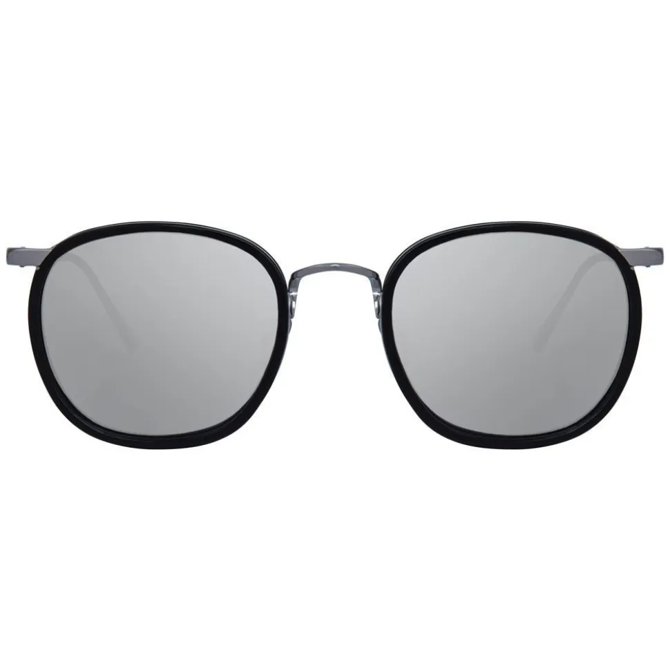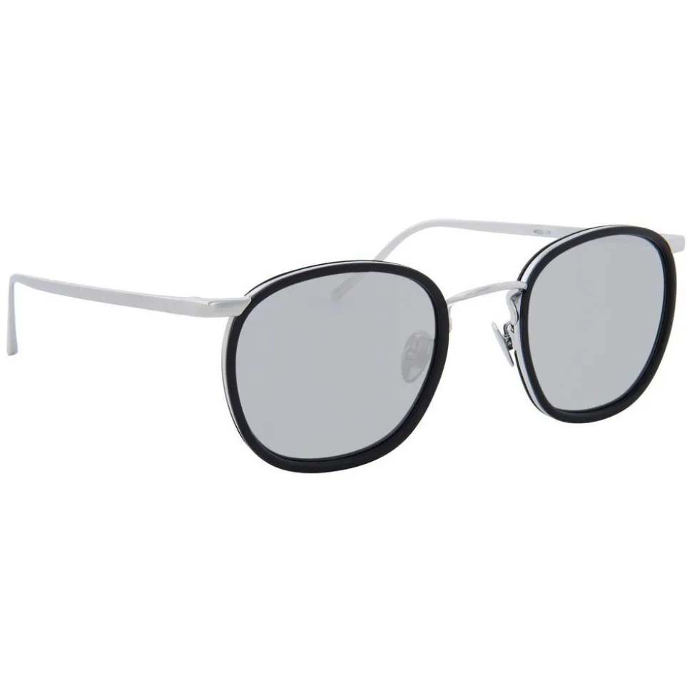 Inspired by vintage styling, these oval sunglasses from Linda Farrow are handmade from an elegant combination of 18-22 carat white gold-plated titanium and hand polished black Italian acetate, with platinum precious lenses.