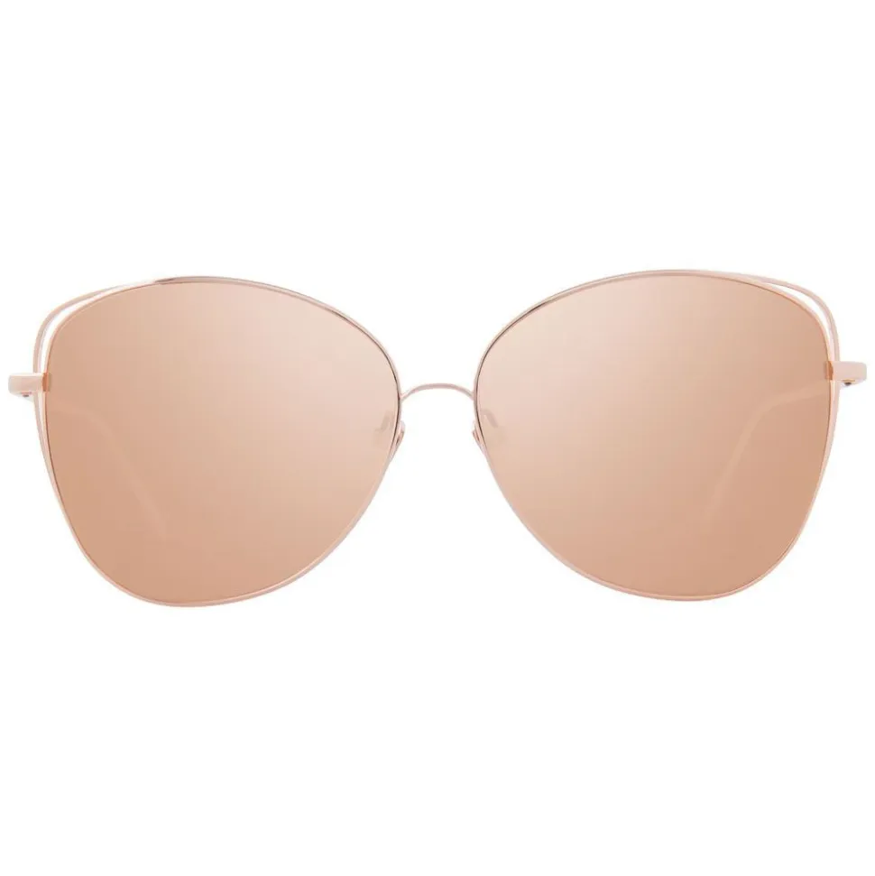 As seen in our SS17 campaign, these luxurious cat eye Linda Farrow sunglasses are made by hand entirely from 18-22 carat rose gold-plated lightweight titanium. A co-ordinating frame creates an unusual floating effect between the rims, which contours the rose gold precious lenses.
