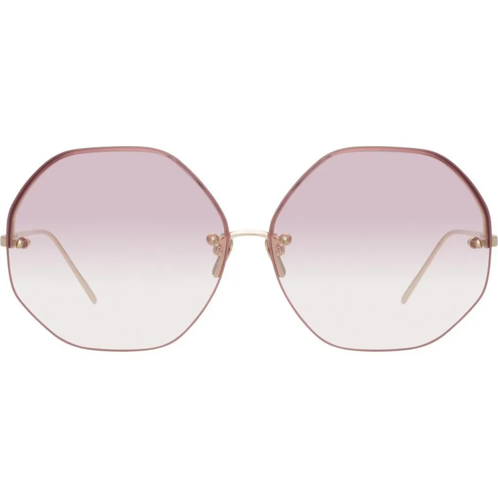 In an oversized angular silhouette, these luxurious Linda Farrow sunglasses celebrate the era of the good life captured by Slim Aarons. Handcrafted with 18-22 carat light gold-plated hypoallergenic titanium running along the top half of the back of the frame and into tapered temples, these statement sunglasses are contrasted with pink gradient nylon lenses.