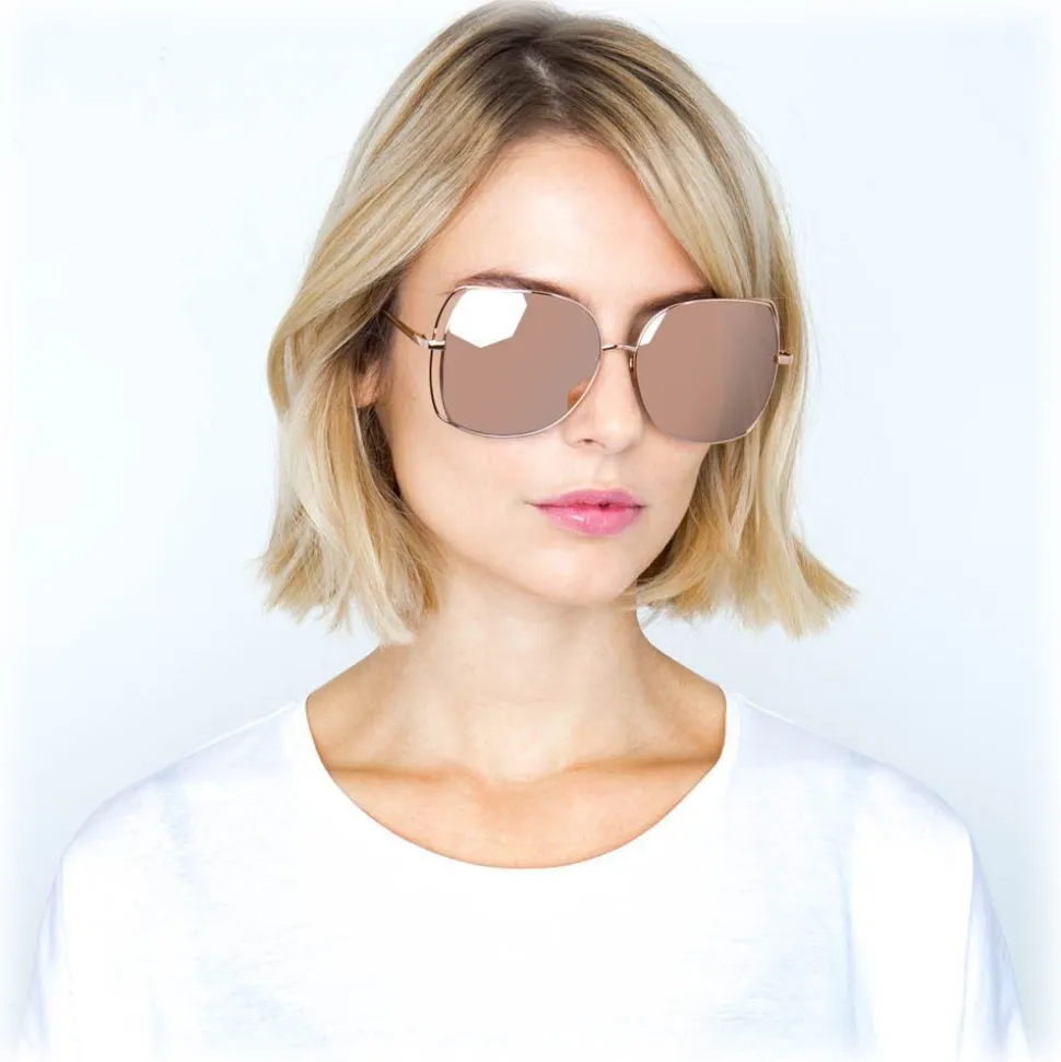 In a glamorous oversized silhouette, these luxurious Linda Farrow sunglasses are made by hand entirely from 18-22 carat rose gold-plated lightweight titanium. A co-ordinating double rim creates a feature floating effect, which contours the rose gold precious lenses.