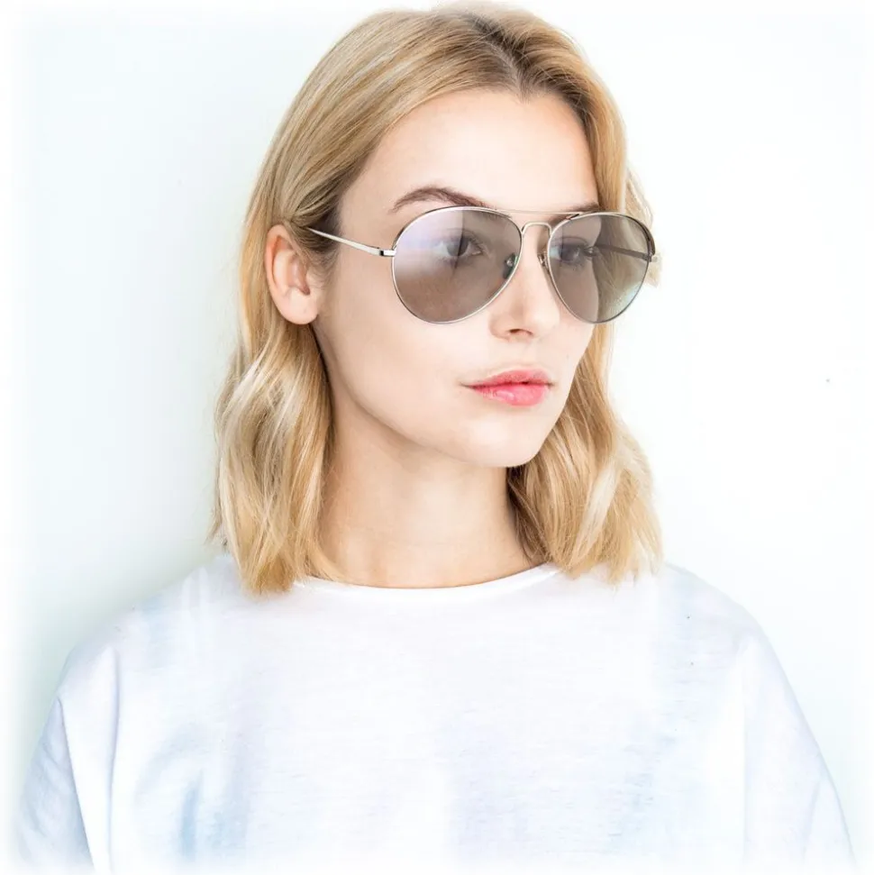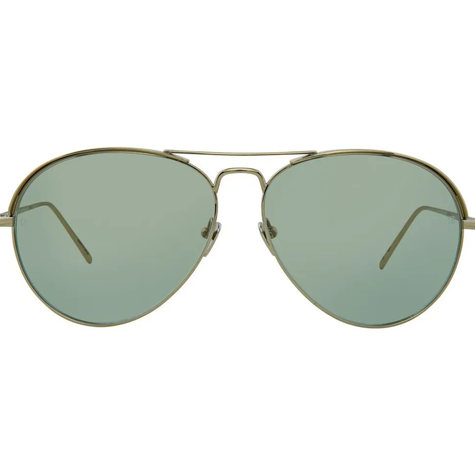 Bringing understated yet luxurious details to the timeless aviator silhouette, these unisex Linda Farrow sunglasses are handcrafted entirely from 18 – 22 carat white gold-plated Japanese lightweight titanium.