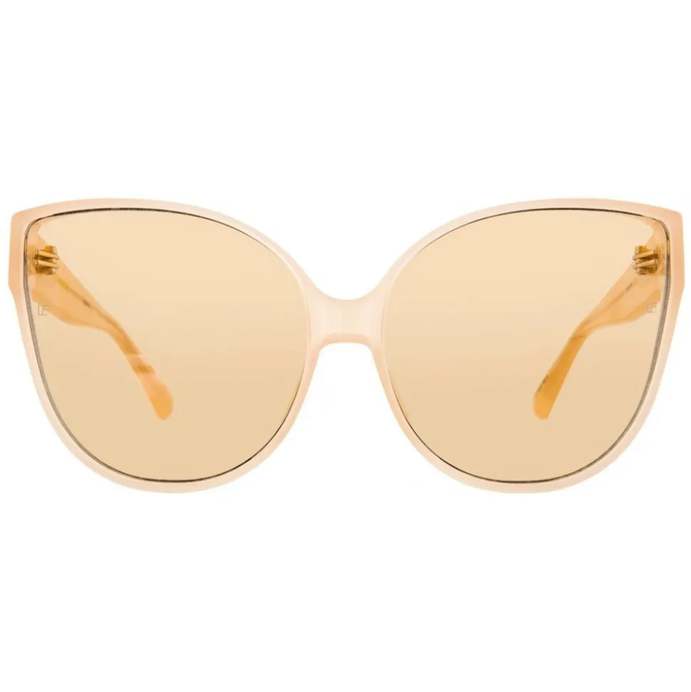 Inspired by the timeless glamour of fifties Italian Riviera, these oversized cat eye sunglasses are key to the Linda Farrow collection. Crafted from hand polished, high shine milky pink Italian acetate, accented with signature rose gold-plated raised pin and hinge details, these sunglasses feature flat solid peach lenses for an innovative twist, contrasted with an oversized lip extended at the corners of the frame.