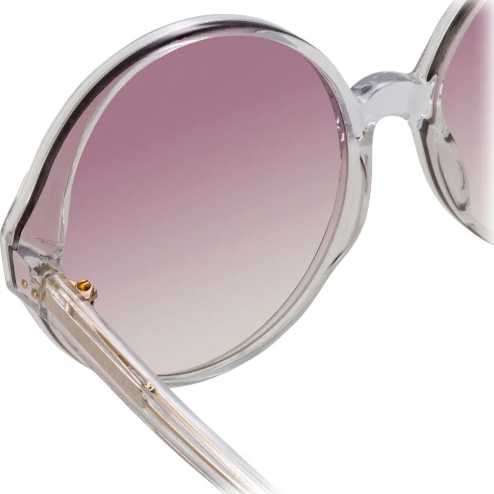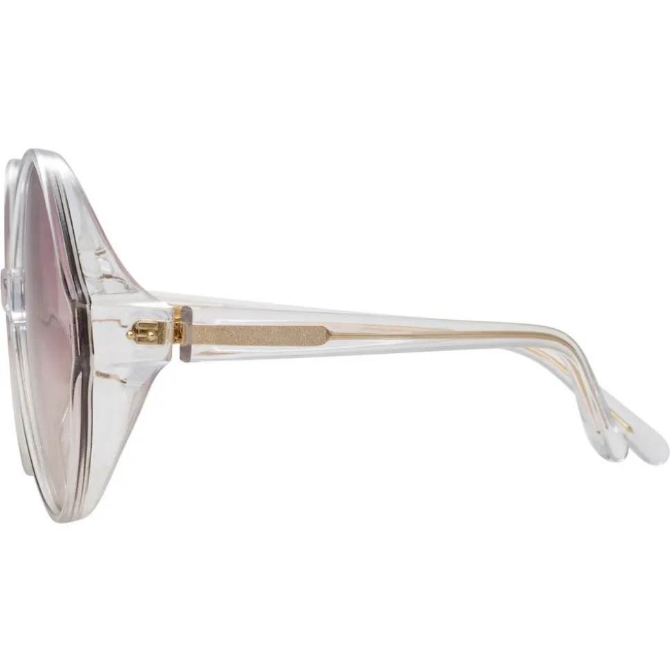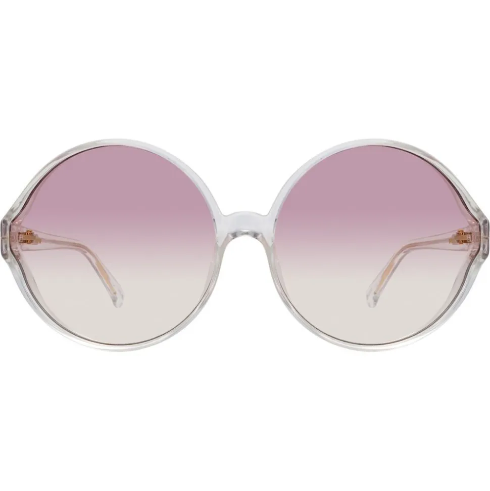 Imbued with a sense of timeless glamour, the ‘Eden’ is key to the Linda Farrow collection. Inspired by Slim Aarons glamorous poolside photography, these oversized round sunglasses are crafted from hand polished, high shine chunky clear Italian acetate, with flat pink gradient nylon lenses.