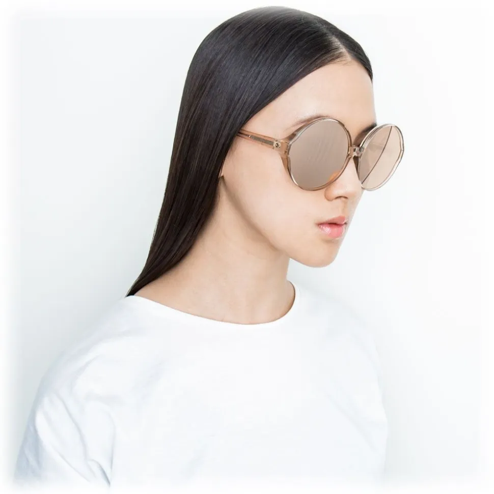 Imbued with a sense of timeless glamour, the ‘Eden’ is key to the Linda Farrow collection. In a round oversized silhouette crafted from hand polished, high shine chunky ash Italian acetate, these signature sunglasses are accented with rose gold-plated raised pin and hinge details.