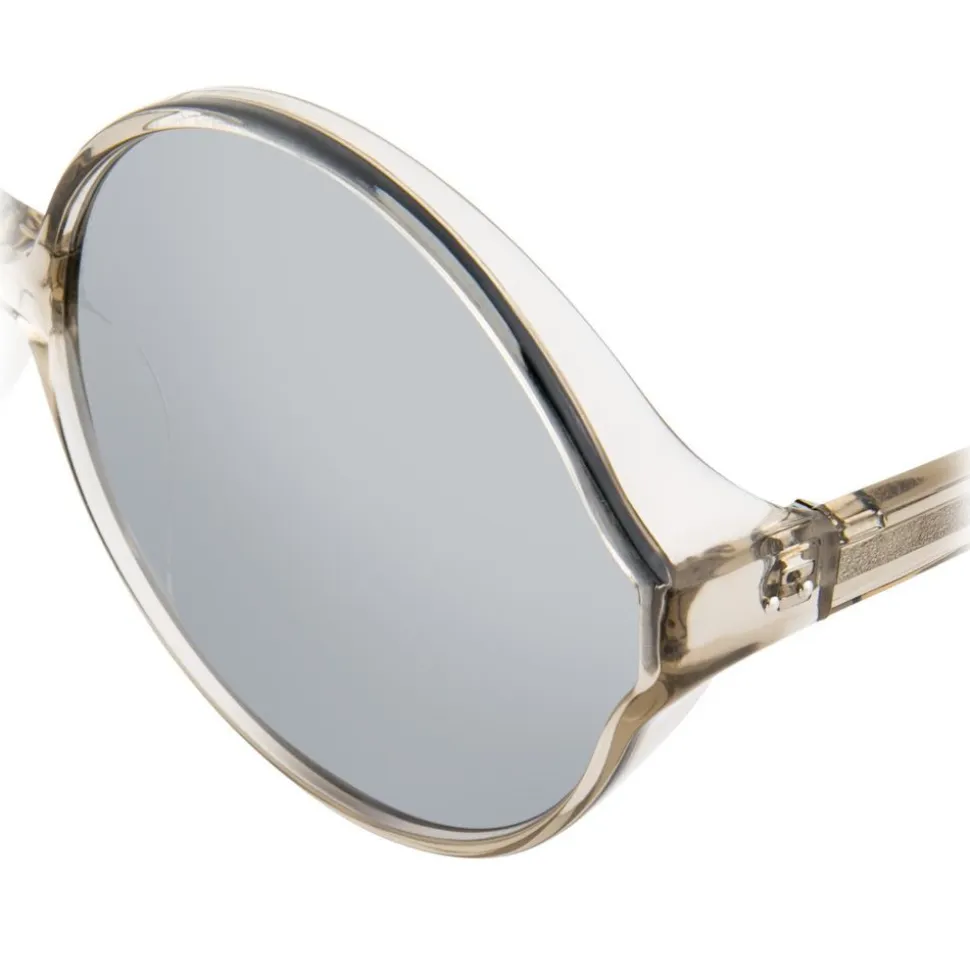 Imbued with a sense of timeless glamour, the ‘Eden’ is key to the Linda Farrow collection. In a round oversized silhouette crafted from hand polished, high shine chunky truffle Italian acetate, these signature sunglasses are accented with white gold-plated raised pin and hinge details.