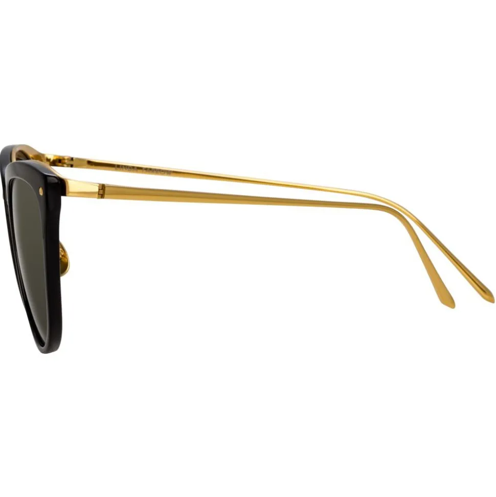 Encapsulating the vintage poolside glamour of the jet set captured by Slim Aarons, these winged cat-eye Linda Farrow sunglasses are the epitome of retro-luxe styling. 18 – 22 carat yellow gold-plated lightweight titanium runs along the back of the black Italian acetate frame and into the nose bridge and temples for a sophisticated contrast.