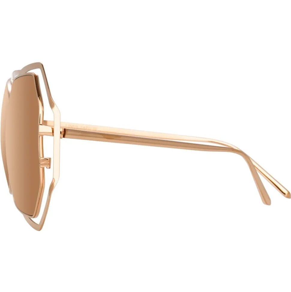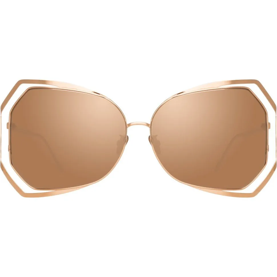 Crafted entirely from 18-22 carat rose gold-plated hypoallergenic lightweight titanium with co-ordinating rose gold precious lenses, they are hand finished with characteristic tapered temples complete with the Linda Farrow logo and adjustable nose pads for superior comfort.