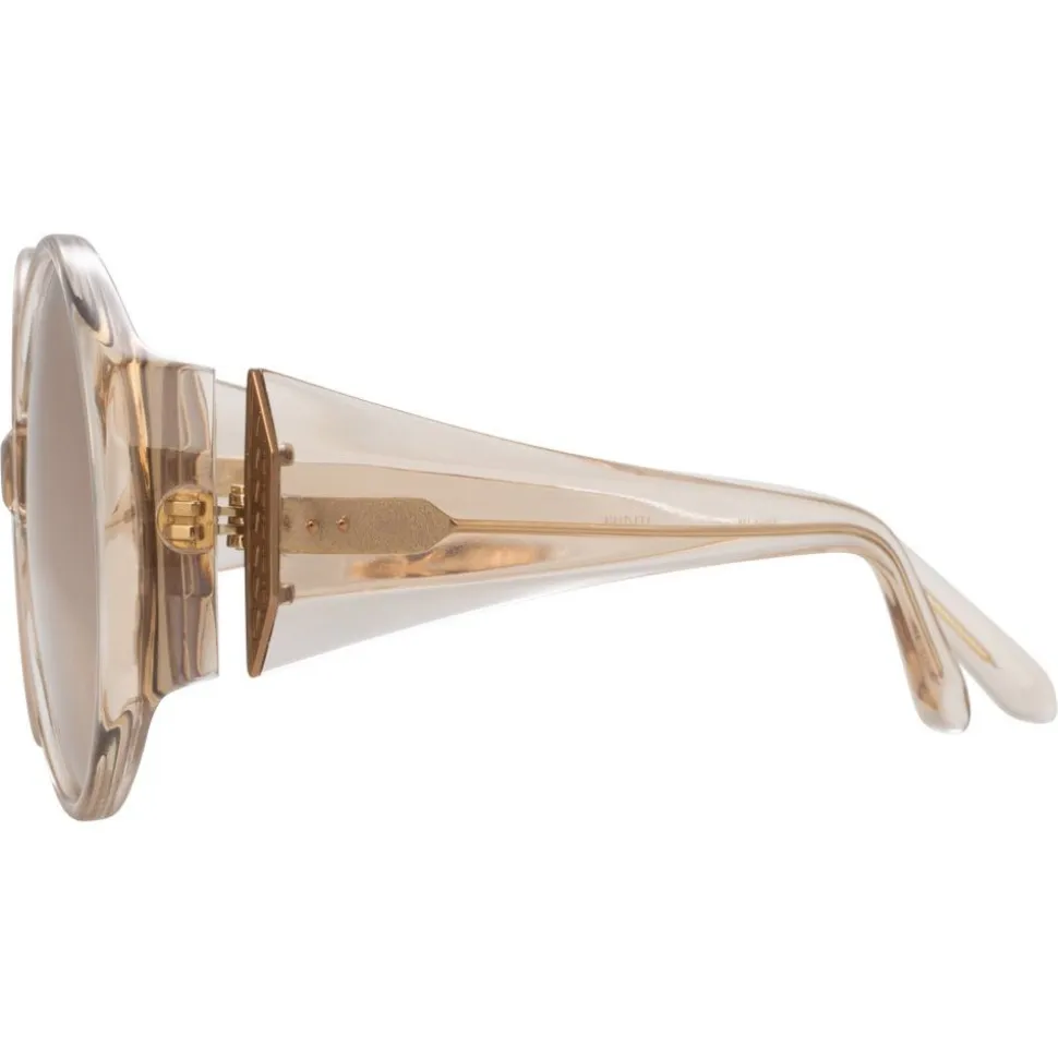 Inspired by the glamour and hedonism of the jet set captured by Slim Aarons, these luxurious round Linda Farrow sunglasses are crafted from chunky, bevelled ash Italian acetate with co-ordinating rose gold precious lenses.