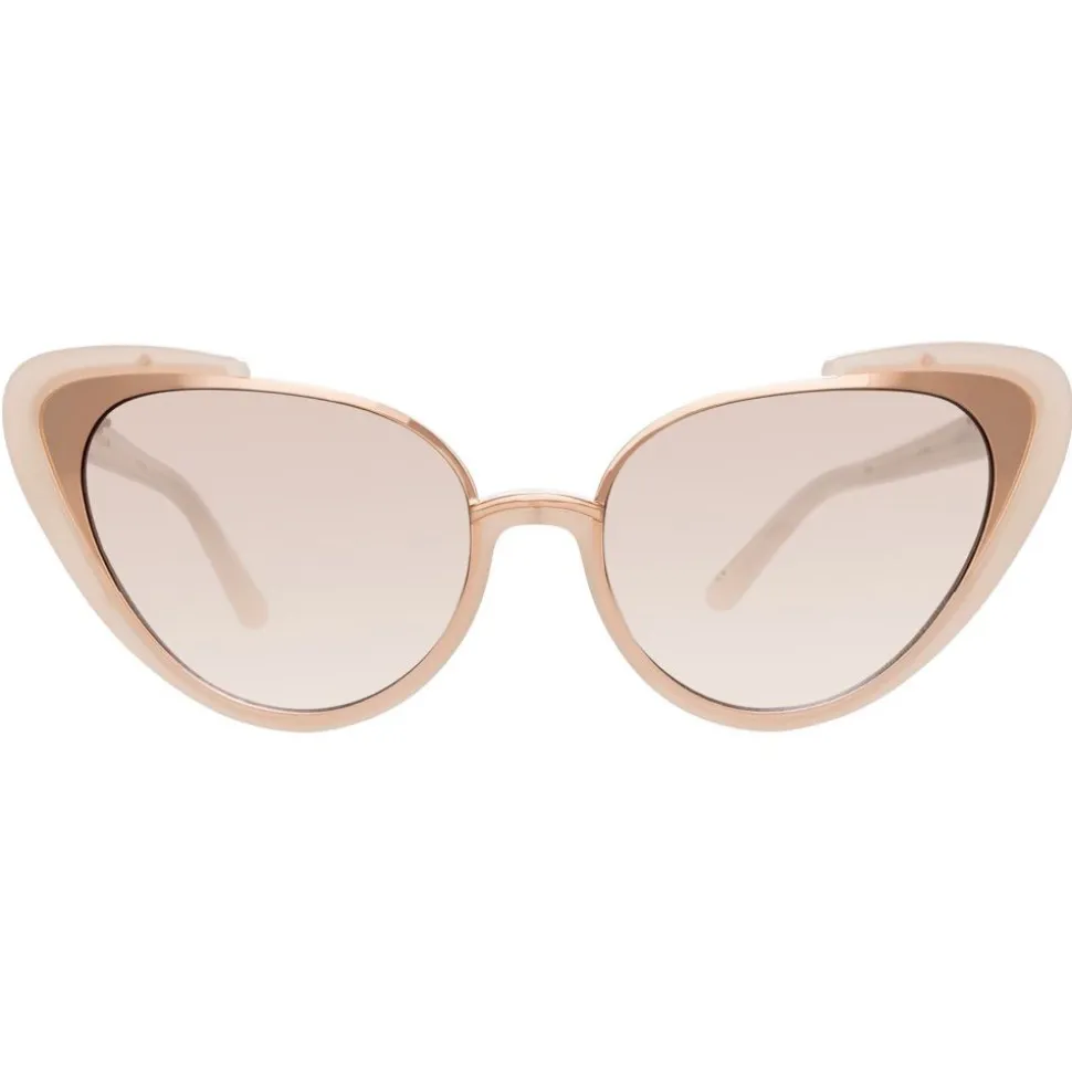 Made for warm winter sun getaways, these effortlessly chic Linda Farrow cat eye sunglasses emanate a subtle sense of luxury. The milky pink Italian acetate frame is hand polished for a high shine, then cut-away at the top of the frame to reveal the rose gold-plated titanium rims which hug dusky light brown gradient lenses.