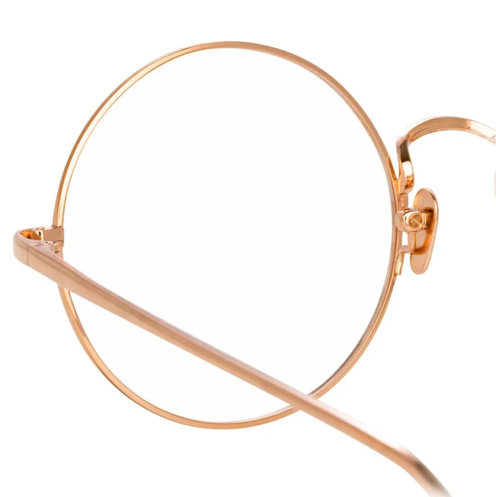 The epitome of luxurious, vintage-inspired design, these round Linda Farrow optical glasses are handcrafted entirely from 18-22 carat rose gold-plated hypoallergenic titanium. Accented with 18-22 carat white gold-plated hypoallergenic titanium to the rims, these sunglasses feature a raised curved nose bridge. Signature finishes include tapered temples detailed with the Linda Farrow logo and adjustable nose pads for superior comfort.