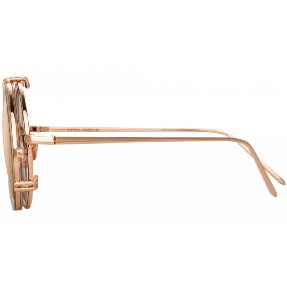 In a retro-inspired round silhouette, this luxurious Linda Farrow design brings together optical glasses crafted from 18-22 carat rose gold-plated hypoallergenic titanium with an innovative ash Italian acetate clip-on sunglasses feature and rose gold lenses, enabling prescription wearers to wear precious lenses.