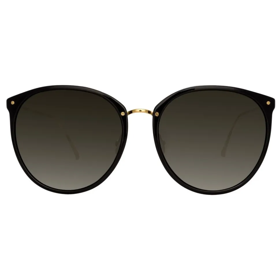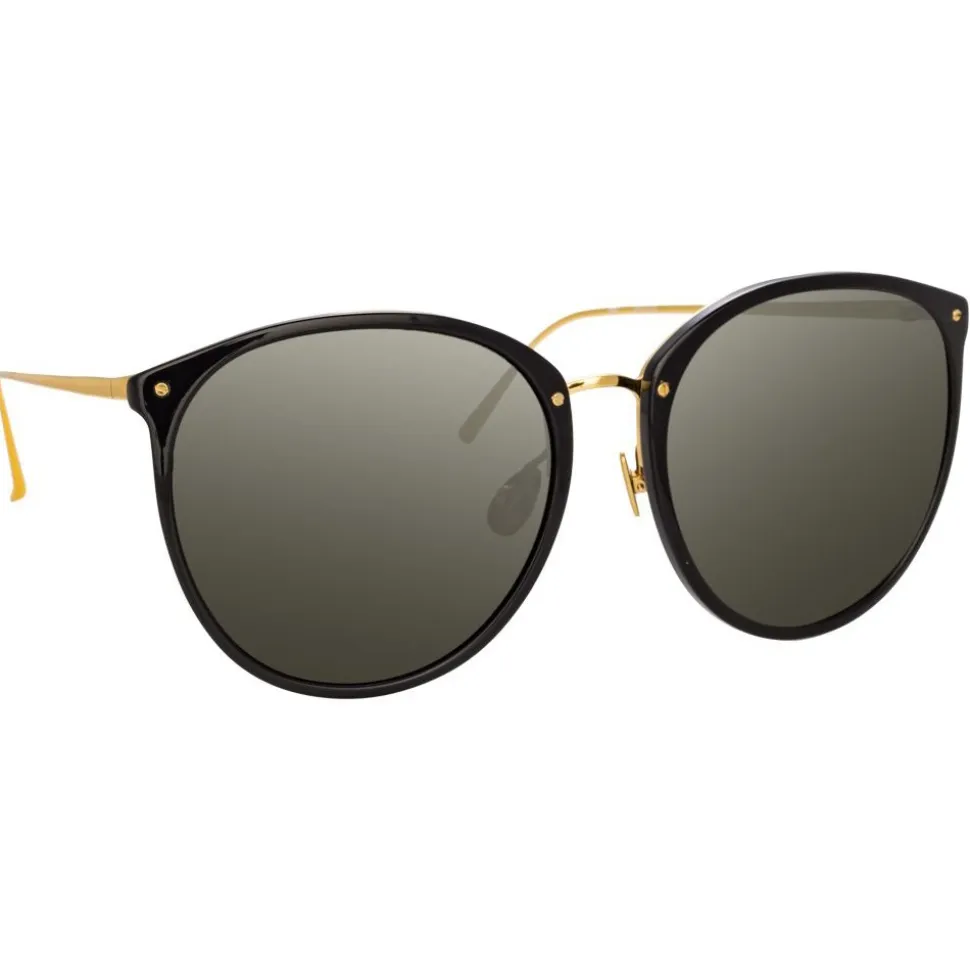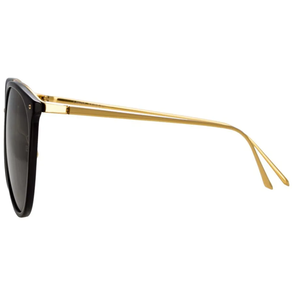 A new, oversized take on our bestselling 251 silhouette, these oval sunglasses from Linda Farrow are crafted from an elegant combination of black Italian acetate and 18-22 carat yellow gold-plated hypoallergenic titanium, which runs along the back of the frames and into the temples.
