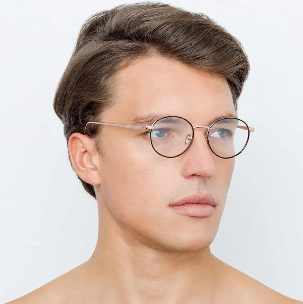 These unisex oval optical glasses from Linda Farrow are crafted from luxurious 18-22 carat rose-gold plated hypoallergenic titanium. The inner windsor rim in tortoiseshell Italian acetate contours the frame and gives the illusion of the metal being trapped inside. Sleek temples are tapered with curved temple tips for superior comfort, finished by hand with the Linda Farrow logo and adjustable nose pads.
