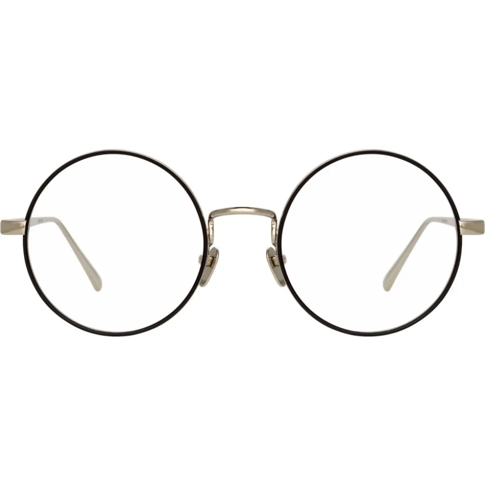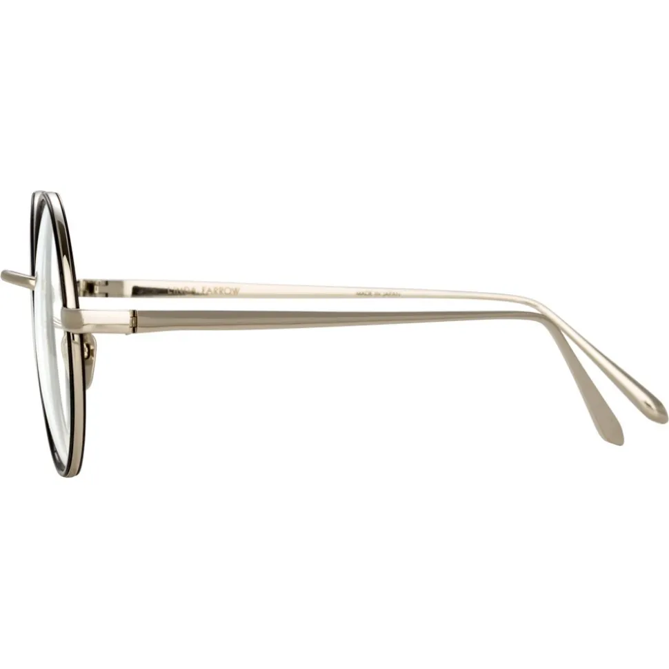 Crafted from luxurious 18-22 carat white-gold plated hypoallergenic titanium, these unisex oval optical glasses from Linda Farrow are elevated with an inner windsor rim in black Italian acetate for an unexpected twist. Sleek temples are complete with the Linda Farrow logo, tapered with curved tips for superior comfort and adjustable nose pads.