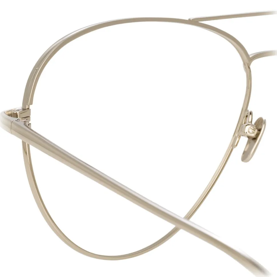 Reimagining the classic aviator silhouette in pure 18-22 carat white gold-plated hypoallergenic titanium, these luxurious unisex Linda Farrow optical glasses imbue timeless elegance. Finished by hand, they feature a double nose bridge and slim, lightweight temples finished with the Linda Farrow logo, tapered for superior fit. Adjustable nose pads provide superior comfort.