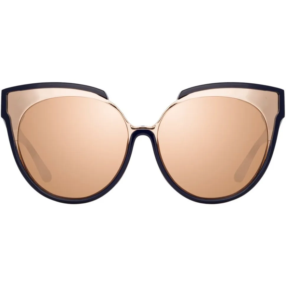 Lending a touch of luxe to a classic silhouette, these luxurious Linda Farrow oversized sunglasses are exposed at the top part of the navy frame to reveal the rose gold-plated rims, hugging the coordinating rose gold precious lenses. They are finished with signature Linda Farrow detailing for an effortlessly chic look.