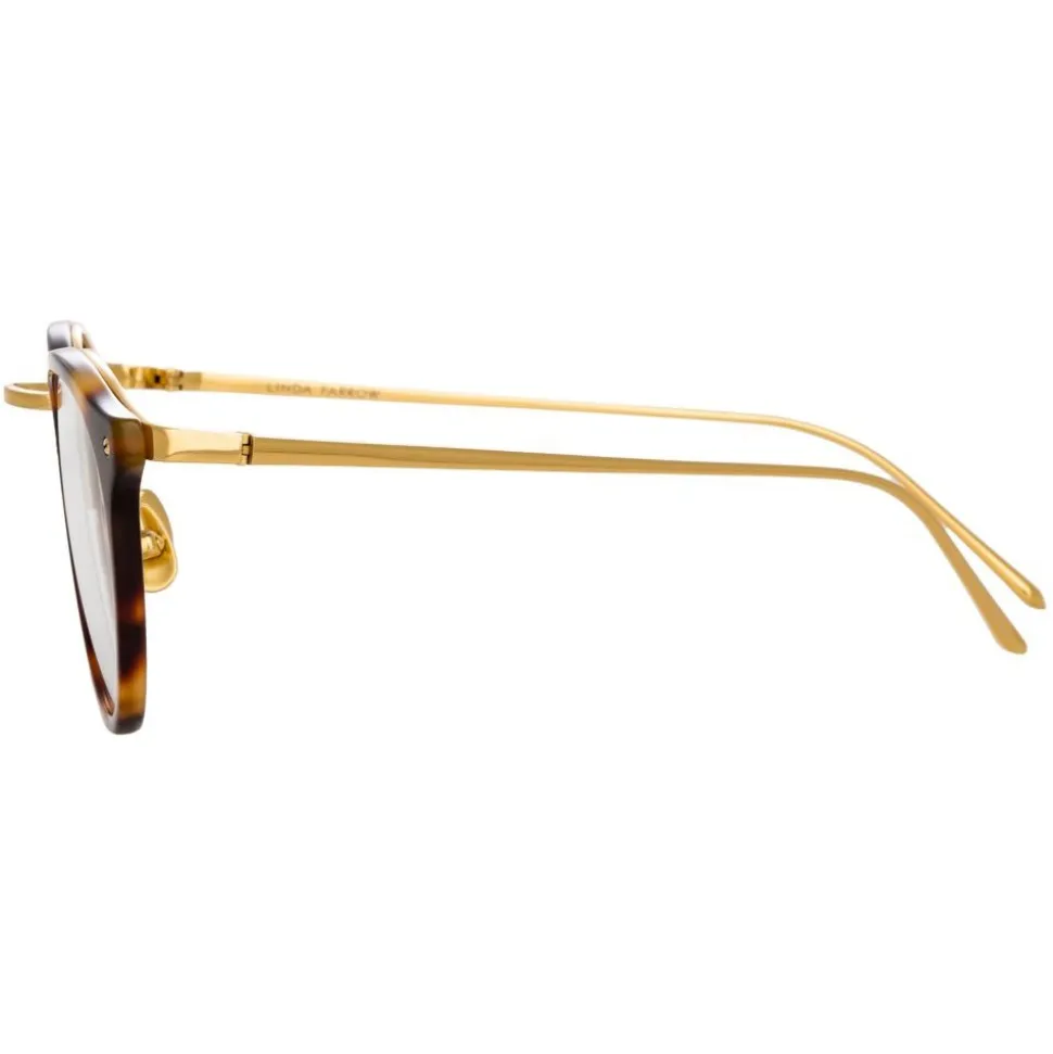 Keep it classic with these unisex Linda Farrow optical glasses. Cut to perfect oval frames from a striking blend of yellow gold-plated titanium and smooth tortoiseshell Italian acetate, the raised nose bridge adds a tough-luxe edge, while the frame is bolstered with gold-plated titanium running along the reverse.