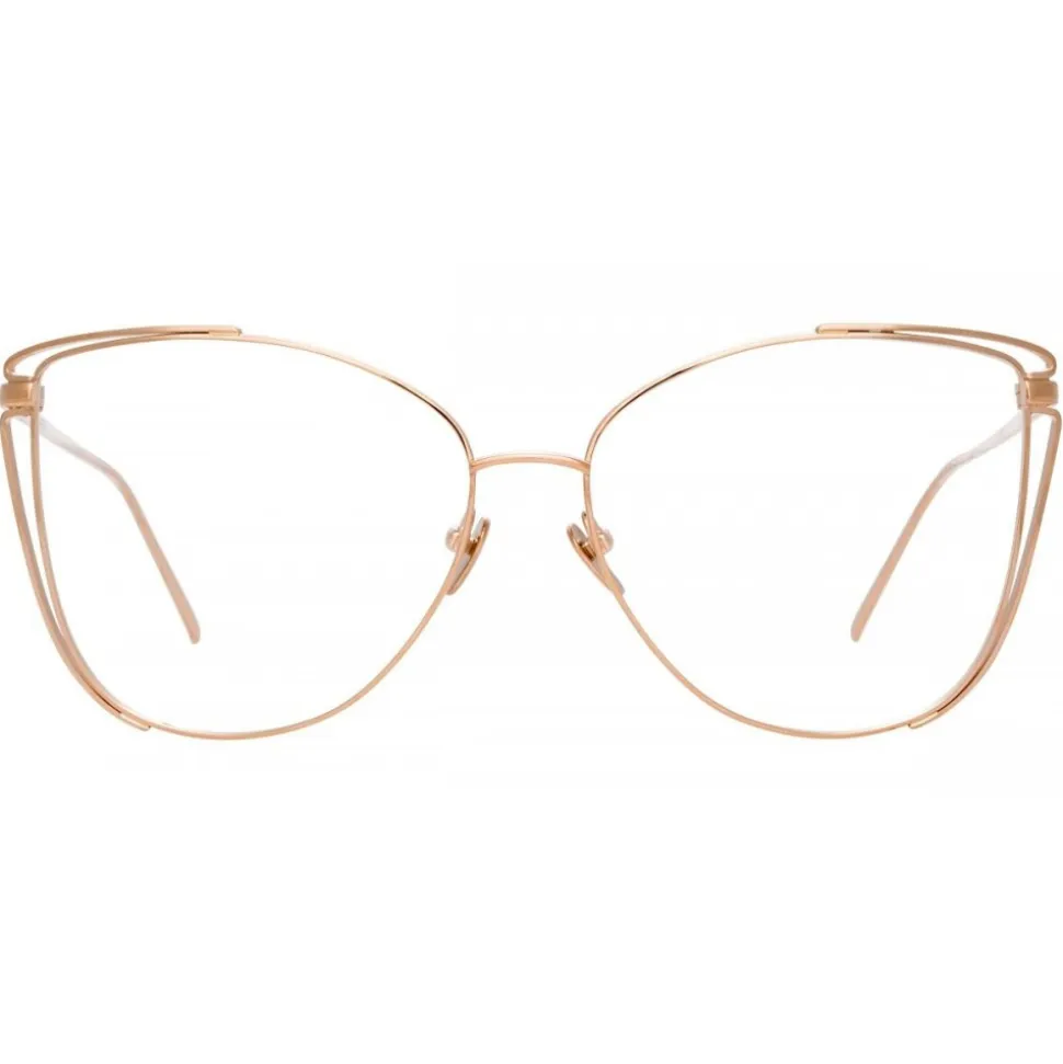 Bringing the glamour to the optical glass, these oversized Linda Farrow rose gold-plated titanium glasses take the classic cat eye to the next level. The corners of the frame are accentuated with a wire frame that mirrors its clean lines for a touch of the unexpected.