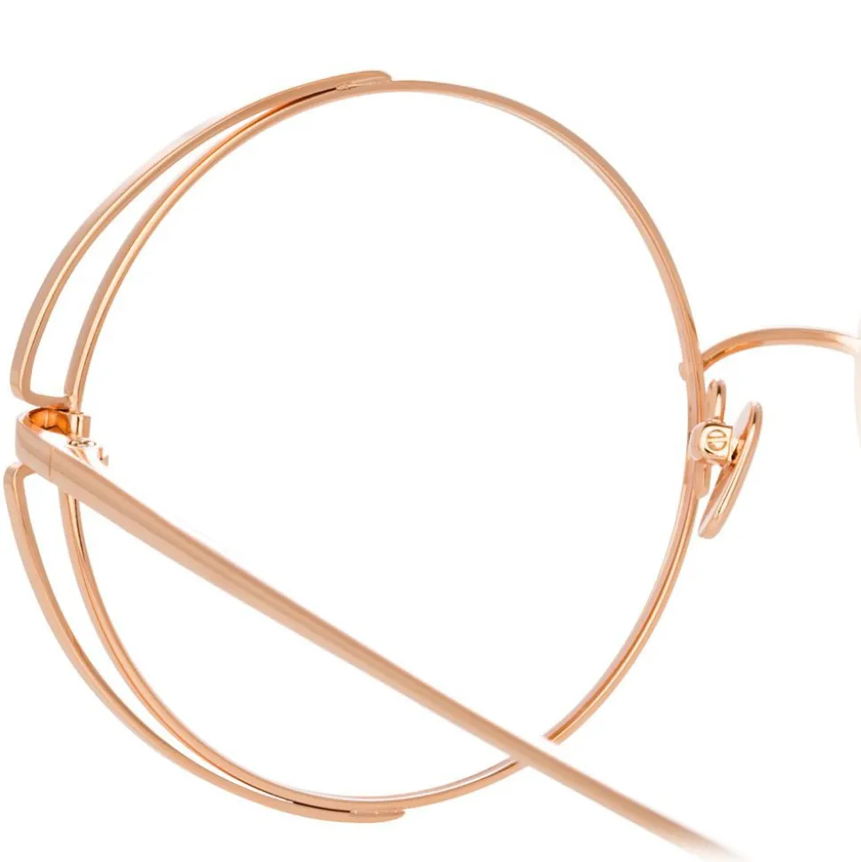 A key silhouette for the season and beyond, these oversized round Linda Farrow optical glasses bring a touch of the unexpected. Crafted entirely from rose gold-plated titanium for an effortlessly chic look, the frames are outlined at the corners, creating an eye-catching illusion of negative space.