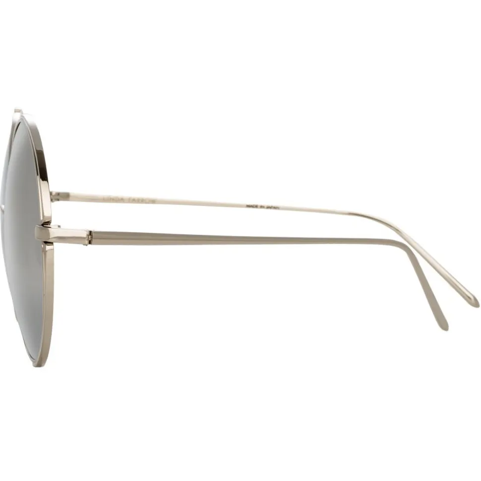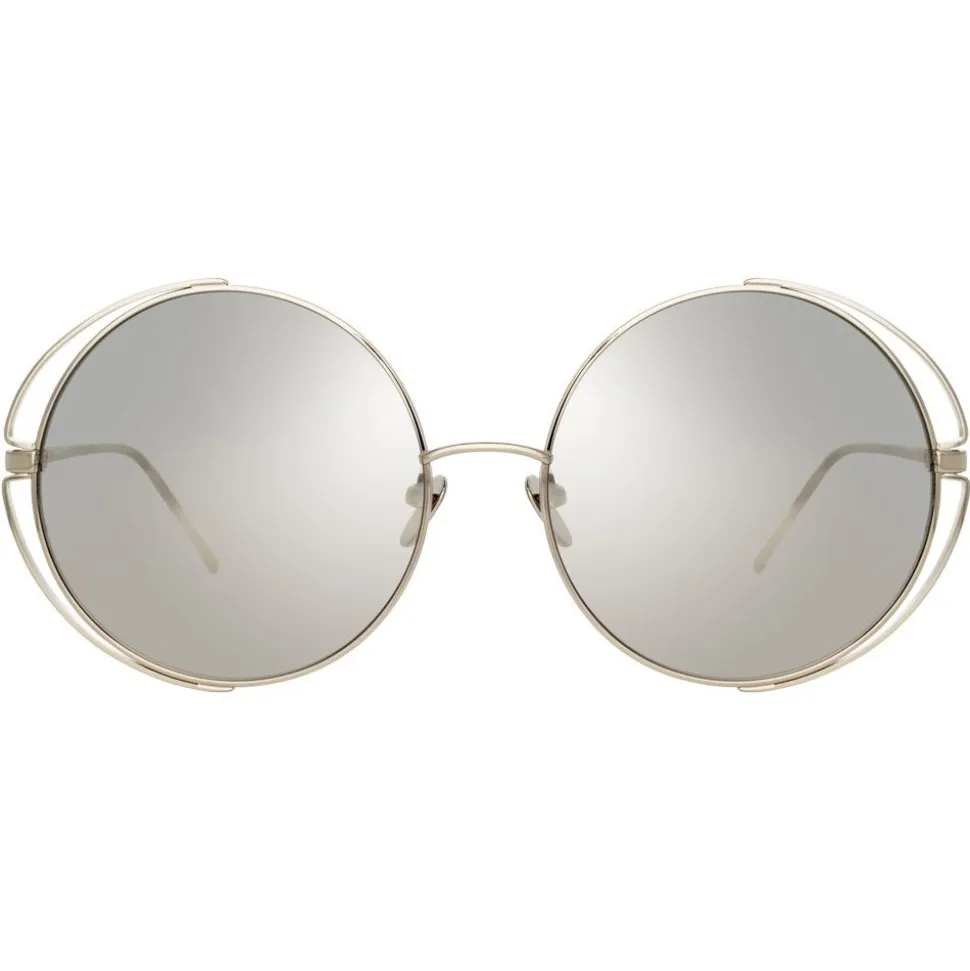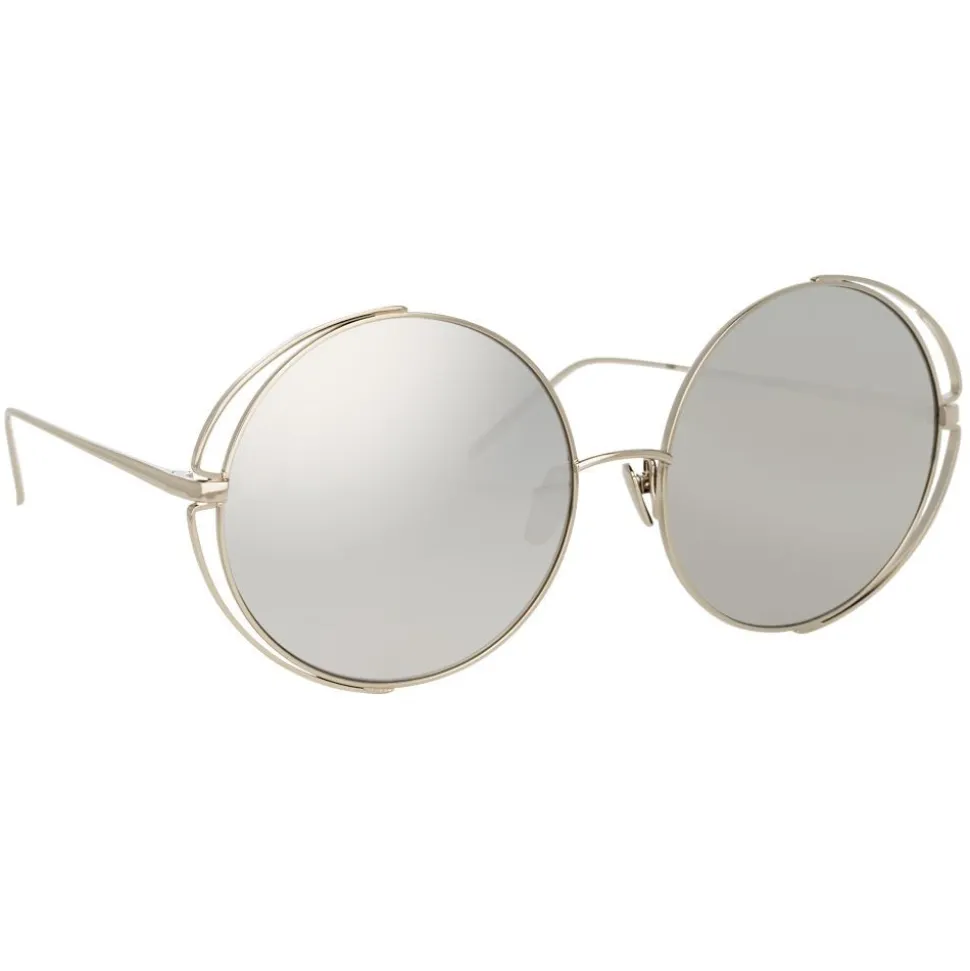 A key silhouette for the season and beyond, these oversized round Linda Farrow sunglasses bring a touch of the unexpected. Crafted entirely from white gold-plated titanium with coordinating platinum precious lenses for an effortlessly chic look, the frames are outlined at the corners, creating an eye-catching illusion of negative space.