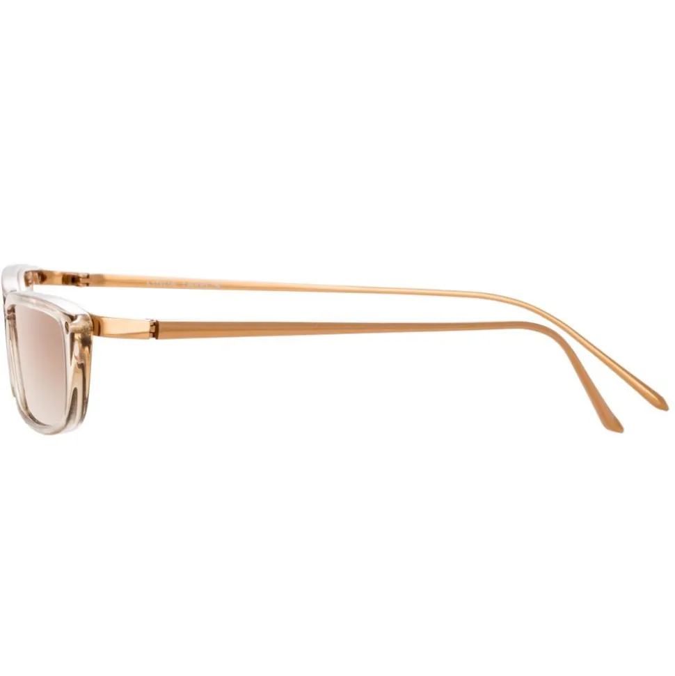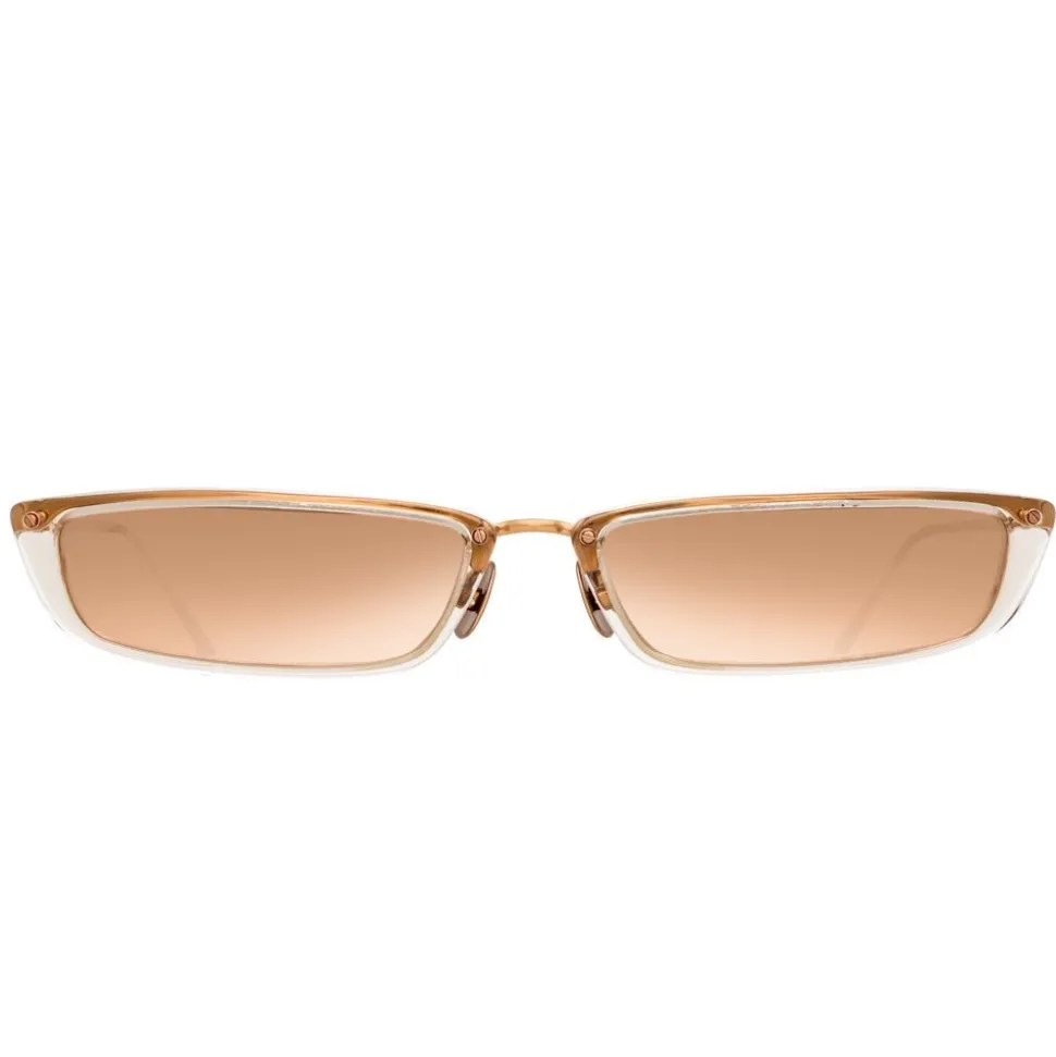 The silhouette for the season, these super skinny 838 Linda Farrow sunglasses pair rich, high shine ash Italian acetate with ultra streamlined rose gold-plated titanium, running across the back of the frame and through the temples. A hero from our campaign, and a hero for your collection.