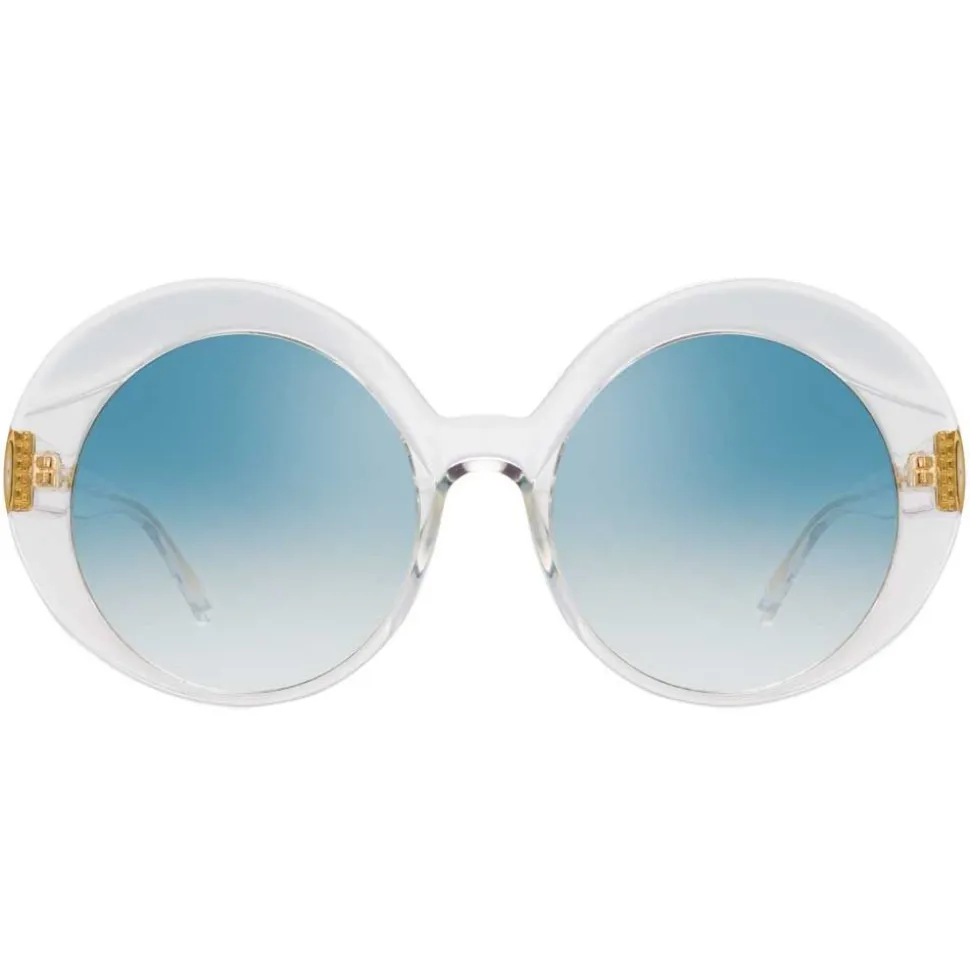 Linda Farrow invites you on an invitation to voyage with these luxurious oversized sunglasses. Inspired by the bright lights, rich textures and effortlessly-chic crowd of oriental cities, these round sunglasses are crafted from clear Italian acetate and blue gradient lenses, finished with signature Linda Farrow detailing.