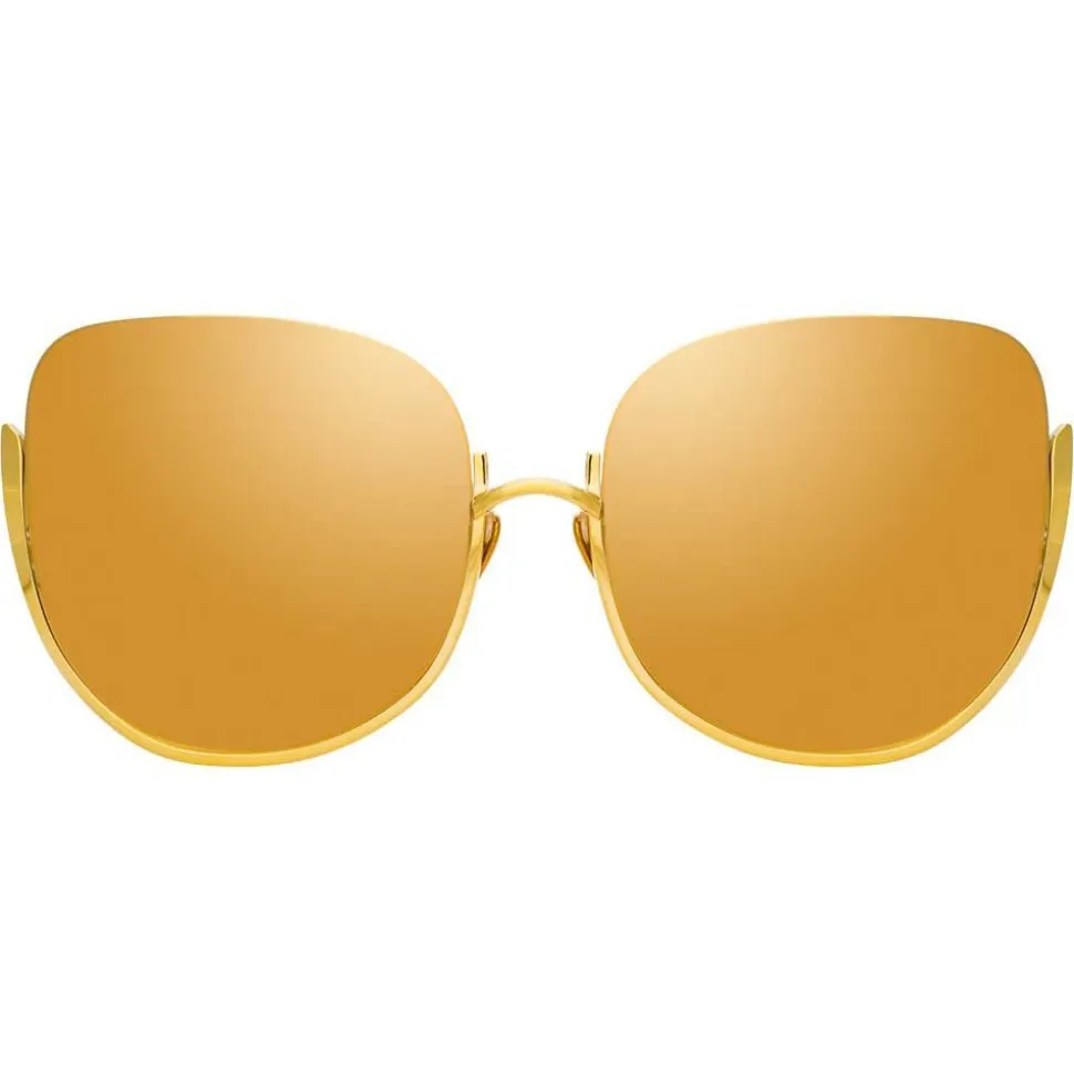 Born from a sense of adventure, these oversized Linda Farrow sunglasses bring the rich textures, colours and effortlessly chic sense of glamour from a Far East metropolis. Taking its name from the streets of Hong Kong, the Kennedy is crafted entirely from 18-22 carat gold-plated lightweight titanium, with the frames cut away at the top to reveal the co-ordinating gold precious lenses.