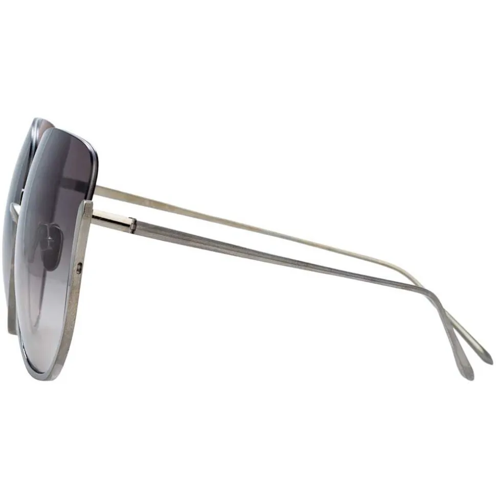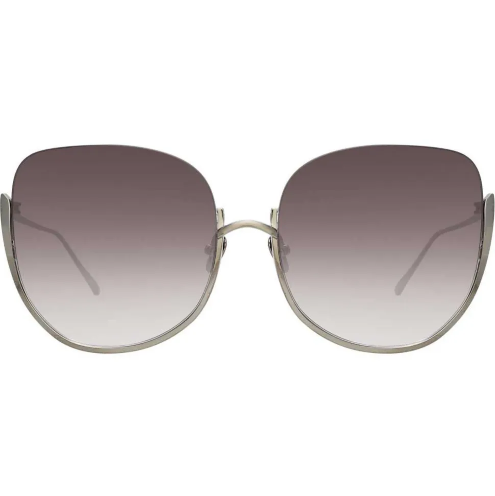 Born from a sense of adventure, these oversized Linda Farrow sunglasses bring the rich textures, colours and effortlessly chic sense of glamour from a Far East metropolis. Taking its name from the streets of Hong Kong, the Kennedy is crafted entirely from 18-22 carat white gold-plated lightweight titanium, with the frames cut away at the top to reveal the grey gradient lenses.