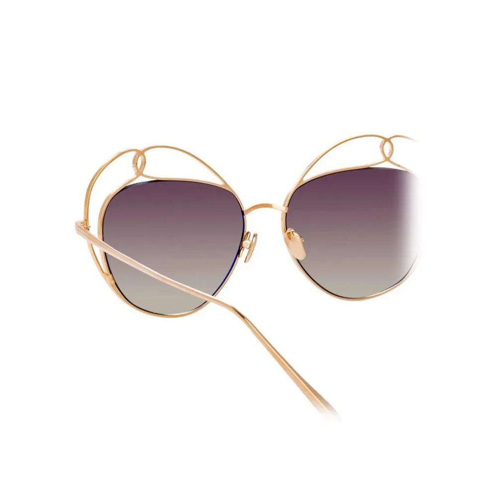 Dreamlike, almost surreal, the Harlequin sunglasses from Linda Farrow are crafted from ultra-fine 18-22 carat rose gold-plated Japanese titanium. Reminiscent of the silhouettes and playfulness of life in the circus, the frame is intricately looped around grey gradient ZEISS Pure lenses. Harnessing premium scratch and smudge resistance technology, ZEISS Pure lenses offer a flawless surface with minimal internal reflection.