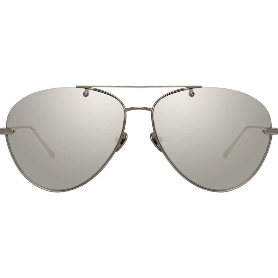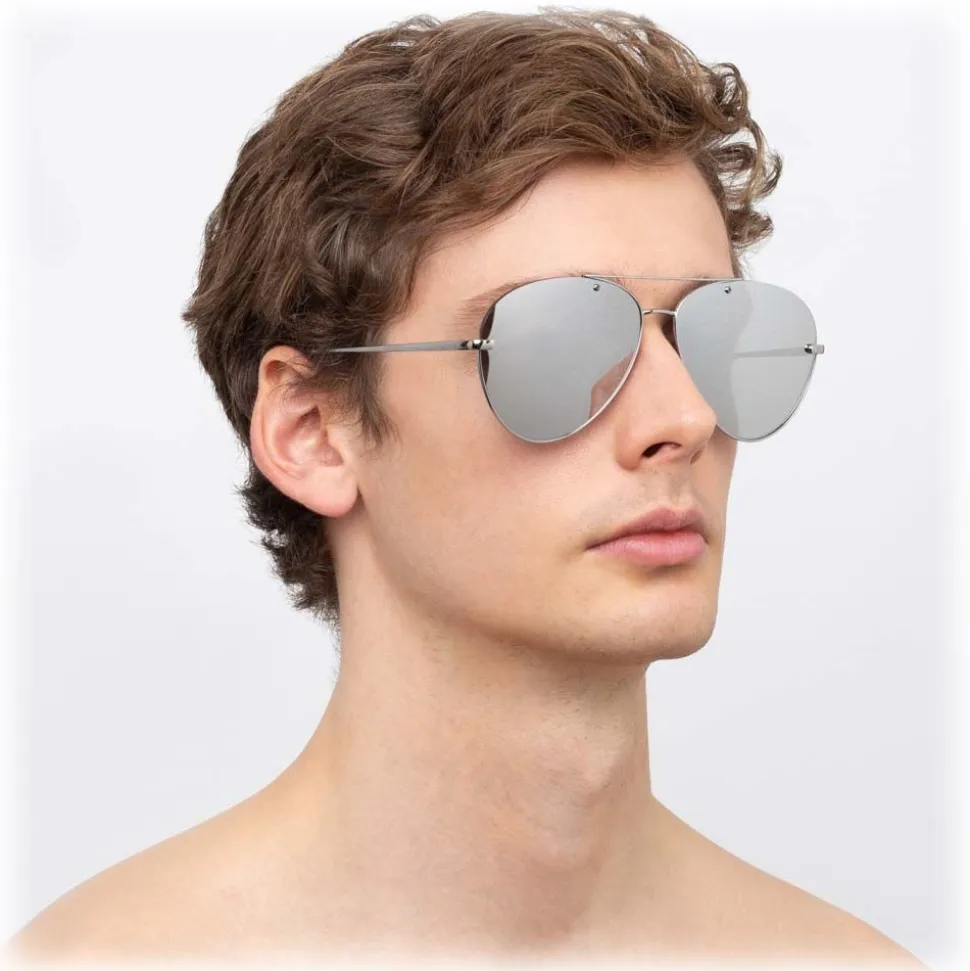 An innovative twist on the classic aviator silhouette, these men’s Linda Farrow sunglasses are crafted with 18-22 carat white gold-plated titanium frames and platinum precious lenses, inspired by the warm tones and elegance of oriental cities. The frames are cut away on the top corners for a contemporary twist, emanating a subtle sense of luxury.