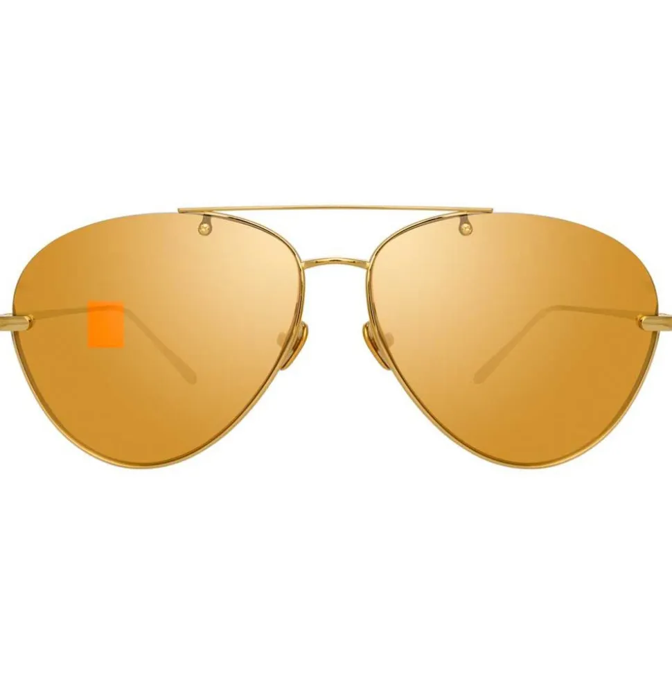 An innovative twist on the classic aviator silhouette, these men’s Linda Farrow sunglasses are crafted with 18-22 carat yellow gold-plated titanium frames and gold precious lenses, inspired by the warm tones and elegance of oriental cities. The frames are cut away on the top corners for a contemporary twist, emanating a subtle sense of luxury.