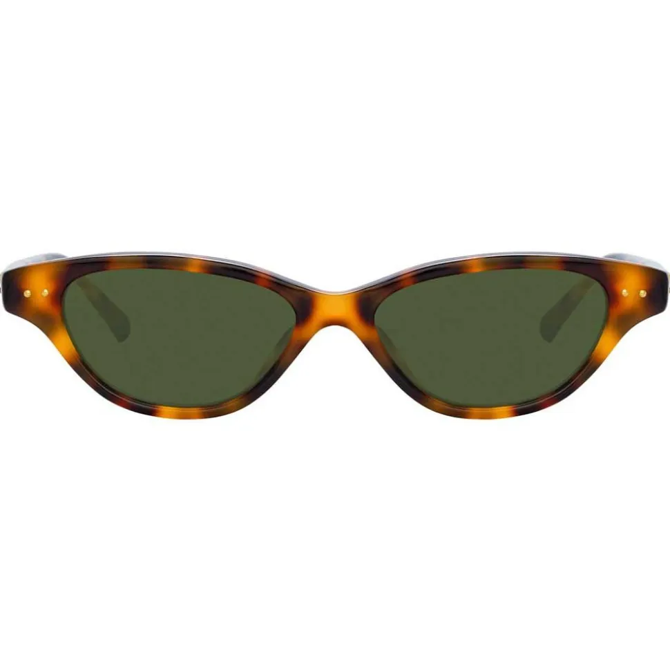 In a skinny cat eye silhouette, these Linda Farrow sunglasses bring glamorous yet contemporary appeal. Tortoiseshell Italian acetate frames are paired with dark green lenses which harness new Zeiss Pure technology for a flawless lens with scratch-free innovation and twice the durability. Signature raised pins in yellow gold complete this standout Linda Farrow style.