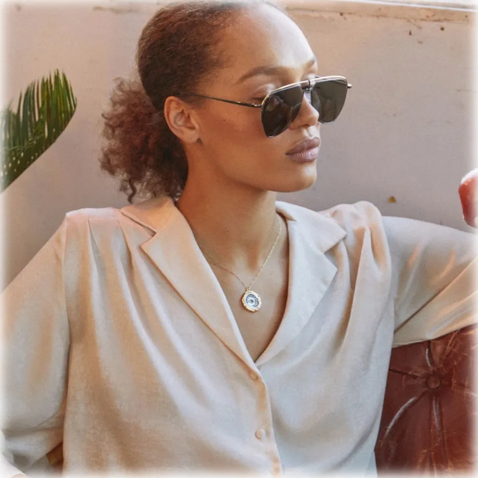 Embodying a playful spirit the Alma aviator sunglasses from the LINDA FARROW collection reference the brand’s 70s heritage. The oversized solid grey lenses are partially encircled by a fine18 carat nickel gold plated titanium framework which transitions seamlessly into our graduated temple.