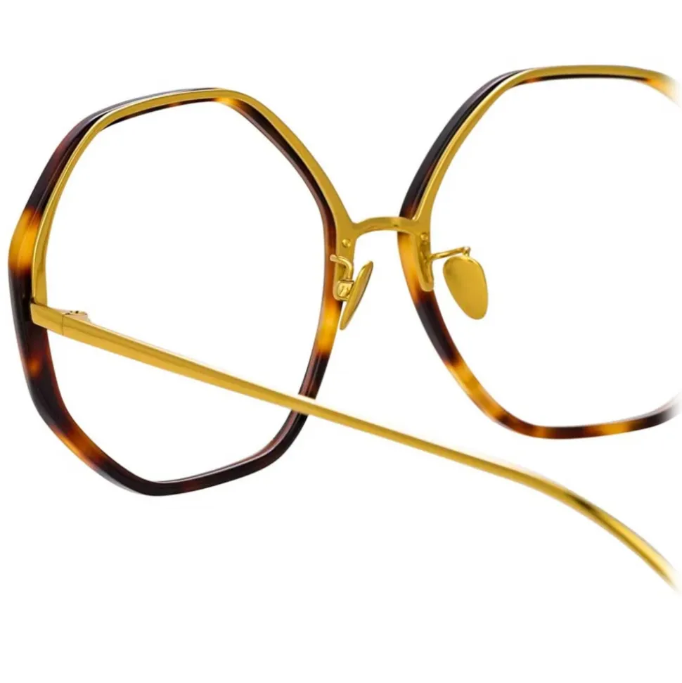 Imbued with a sense of exotic glamour inspired by a Far East metropolis, these oversized Linda Farrow optical glasses pair a classic colour palette of tortoiseshell Italian acetate with 18-22 carat gold-plated titanium, which runs around the back of the frame and into slim, lightweight temples.