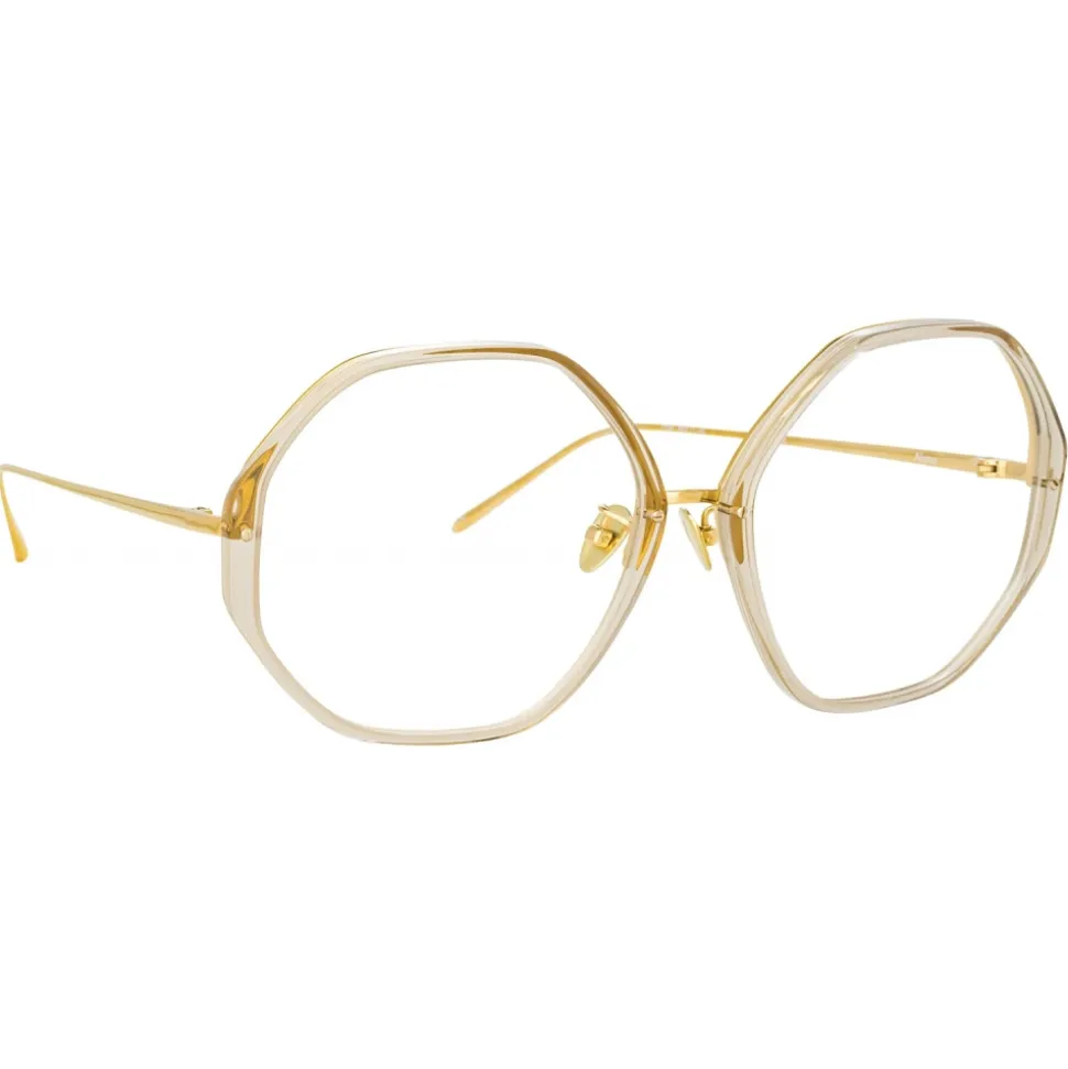 These oversized hexagonal optical frames from the core collection are named after LINDA FARROW’s daughter-in-law. The Alona frames follow classic design elements of the brand executed with precision.