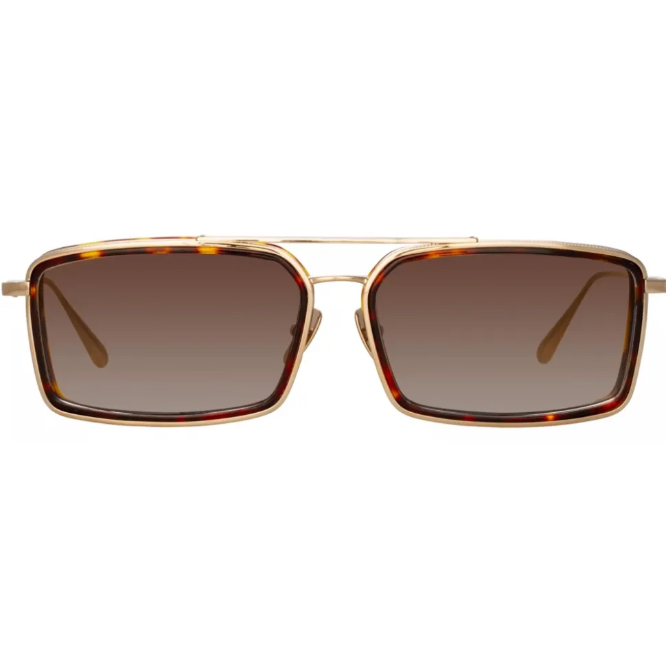Linda Farrow – Cassia Rectangular Sunglasses in Light Gold Mocha – LFL1392C2SUN – Linda Farrow Eyewear